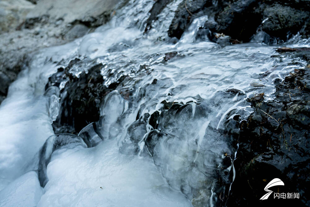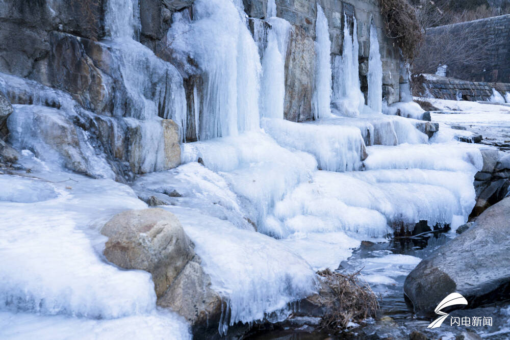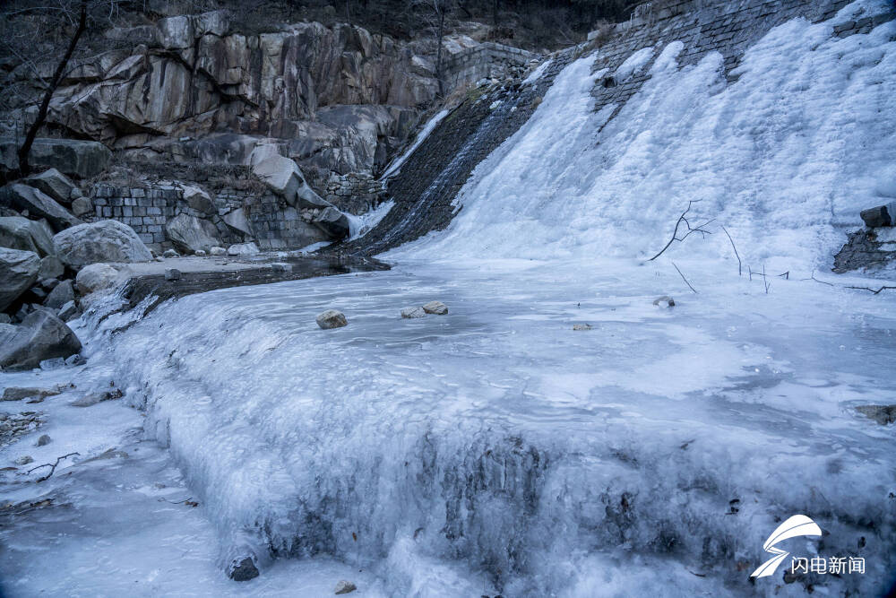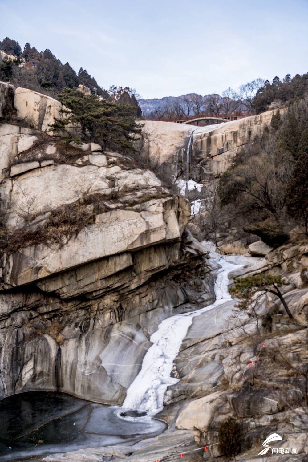 组图丨泰山之冬:冰瀑高悬 “玉带”舞山间 2023-01-31 17:42 齐鲁网 0 冬日的泰山景区,往日流水潺潺的河溪凝结成洁白的“玉带”在山间舞动,一条条银装素裹的冰柱晶莹剔透,更有宽阔的巨型冰瀑高悬在崖壁之上,让人感叹大自然的鬼斧神工。