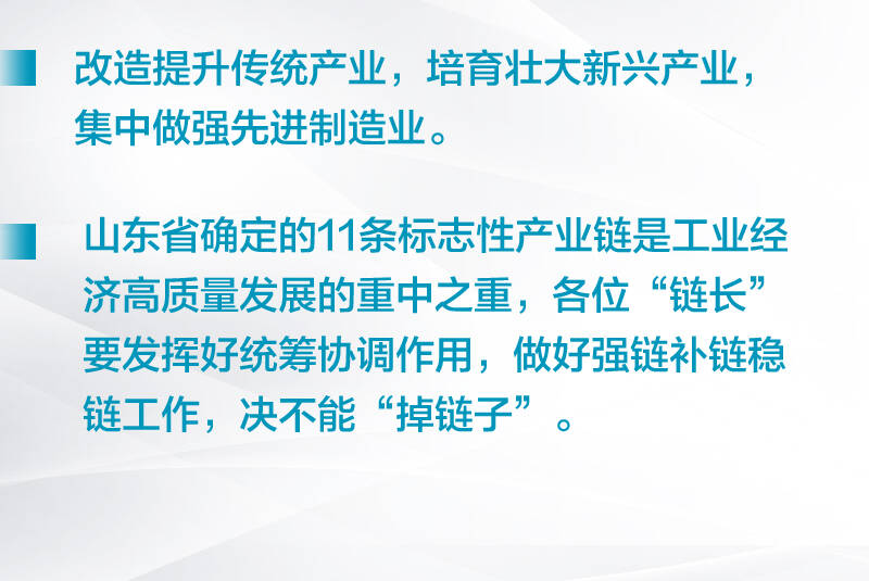会议指出,构建现代化产业体系,推动高质量发展,工业是龙头、是脊梁。必须聚力提质增效,加快建设制造强省、数字强省,培育工业经济发展新动能新优势。