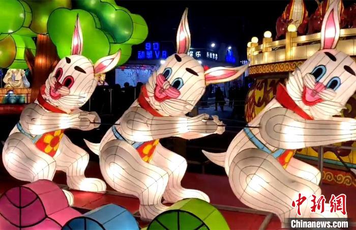 “这组花灯一共设计了10只兔子,穿得喜气洋洋拔中间的‘福’萝卜,寓意新年福气满满。”张向仁指着“兔子拔河”花灯说,他巧设“机关”,利用机械装置让兔子动起来,更具趣味性和互动性。