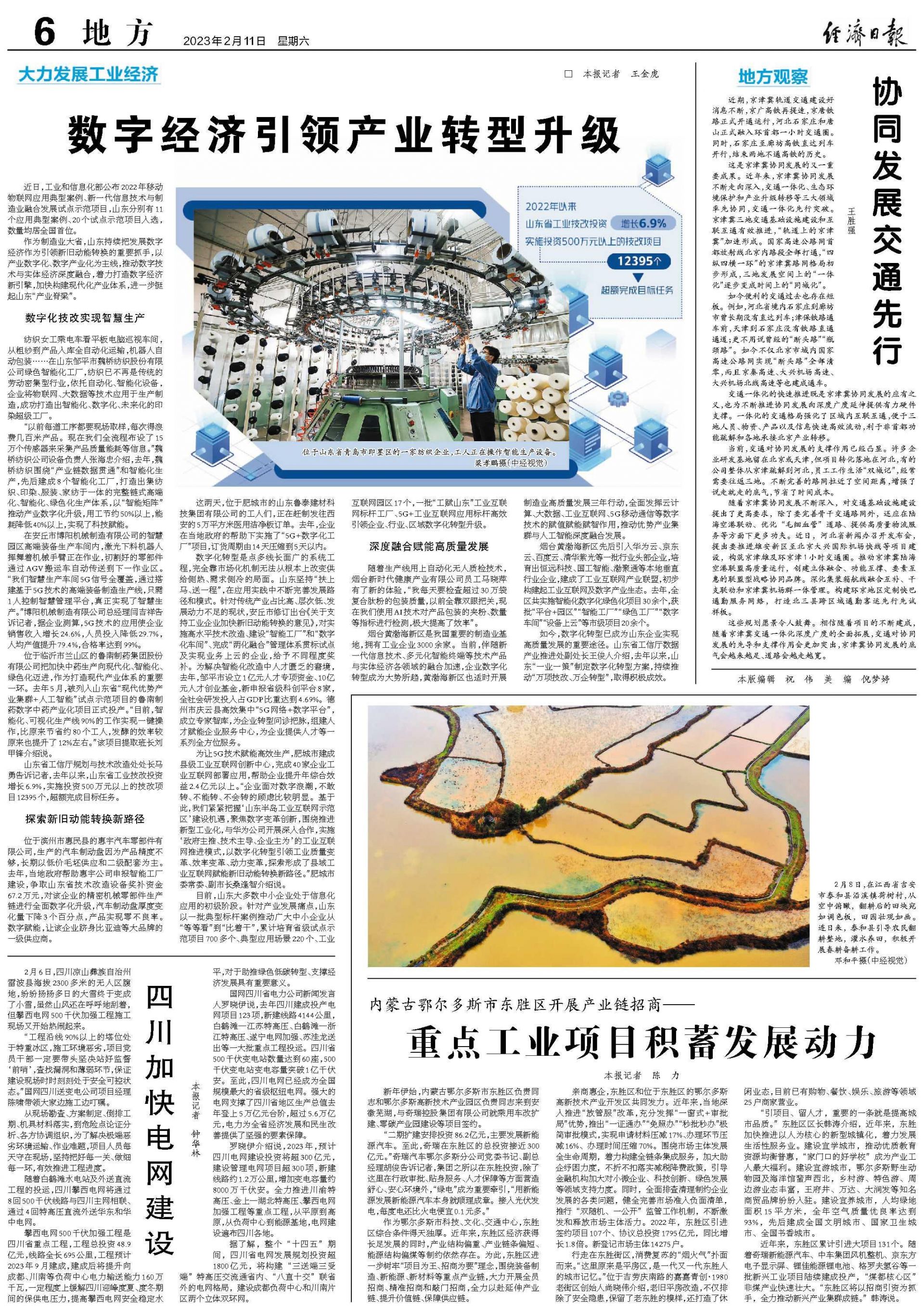 作为制造业大省,山东持续把发展数字经济作为引领新旧动能转换的重要抓手,以产业数字化、数字产业化为主线,推动数字技术与实体经济深度融合,着力打造数字经济新引擎,加快构建现代化产业体系,进一步挺起山东“产业脊梁”。