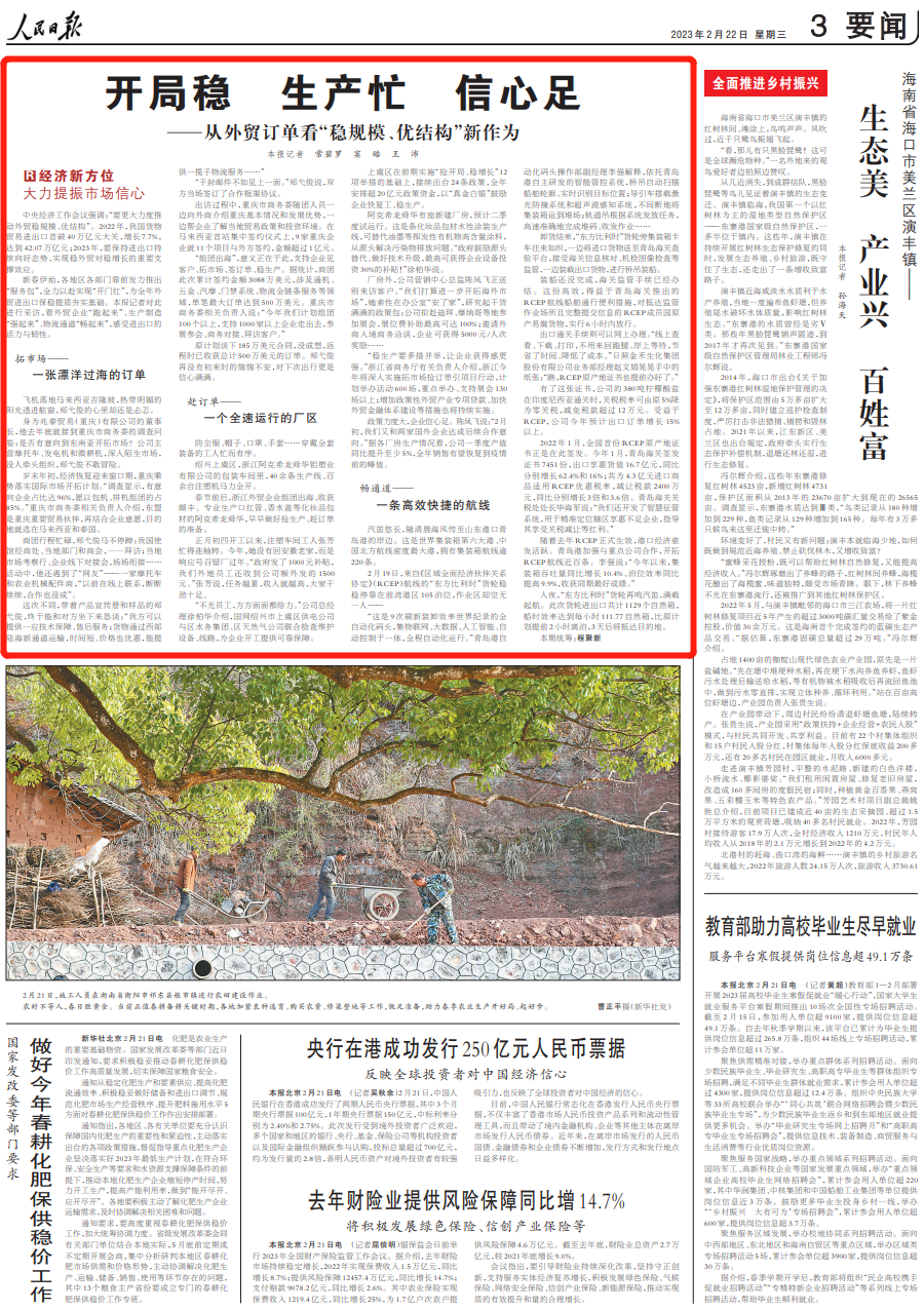 新春伊始,各地区各部门靠前发力推出“服务包”,全力以赴实现“开门红”,为全年外贸进出口保稳提质夯实基础。本报记者对此进行采访,看外贸企业“跑起来”、生产制造“强起来”、物流通道“畅起来”,感受进出口的活力与韧性。