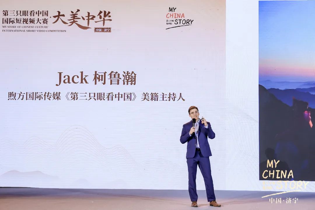 董冰在致辞中表示,济宁是一座古老文明与现代气息完美融合的城市,也是一座兼容并蓄、开放包容的友好城市。近年来,济宁不断提升文化交流亲和力,增强文化传播辐射力,提高文化竞争力,取得了丰硕的成果,已与5大洲19个国家的27个城市缔结了友好交流合作关系,友城交流焕发出更多生机和活力。此次“第三只眼看中国·大美中华”国际短视频大赛致力于讲好中国故事,是推进国际文化交流的重要品牌。大赛启动以来,涌现出大量精品力作,今天获奖的40部作品就是其中的杰出代表。这些作品以第三方视角描绘城乡发展面貌,以短视频形式讲好中国故事,通过外籍友人传播中国声音,有效提升了“大美中华”的国际辨识率和美誉度,也为济宁融入国家外宣大局打开了新思路、开辟了新视野、拓展了新路径。
