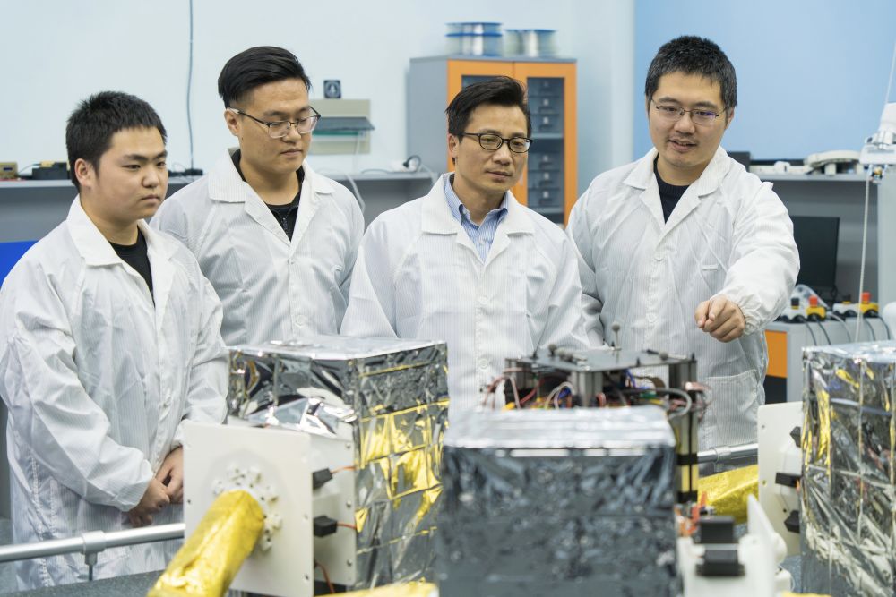 吴立刚(右二)日前和学生们在实验室里交流讨论。(受访者供图)