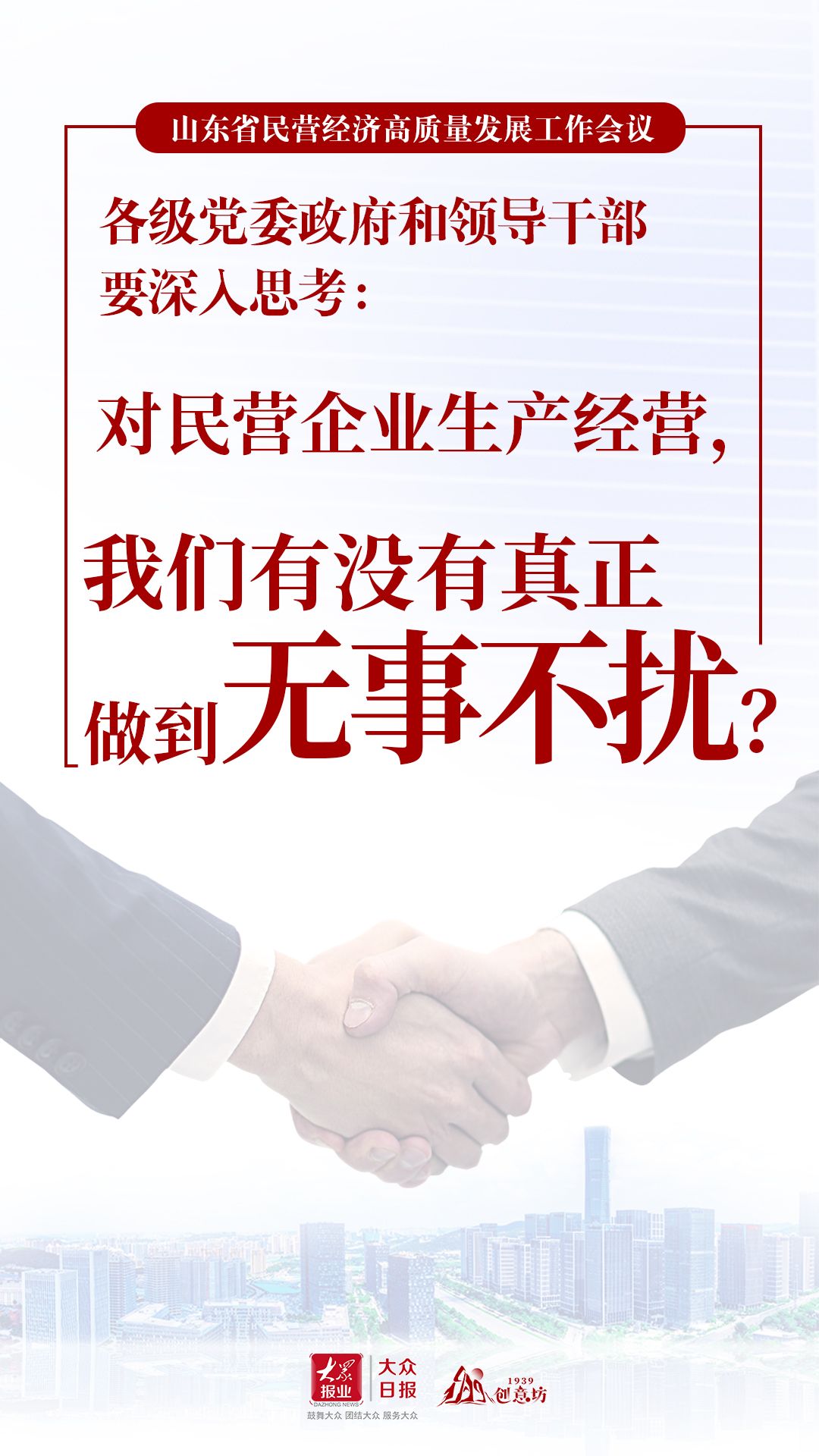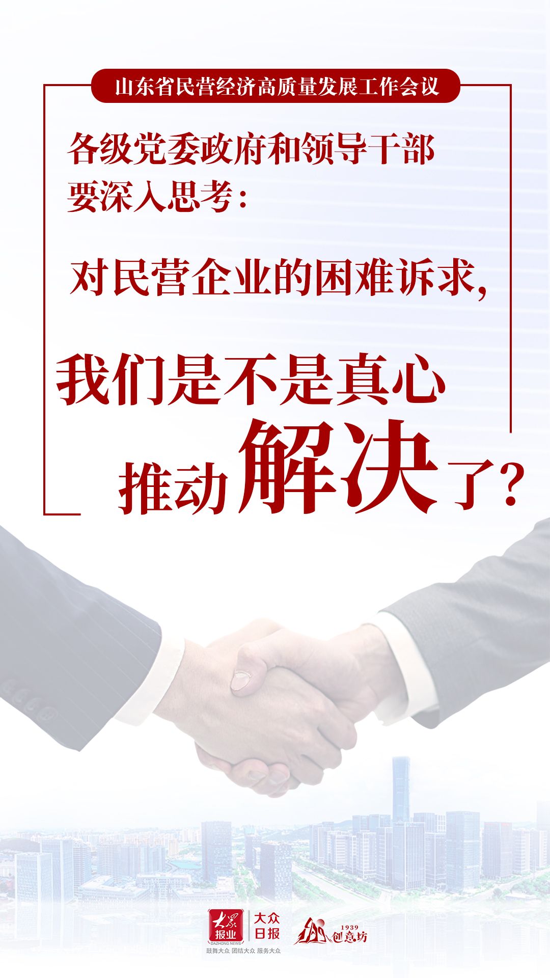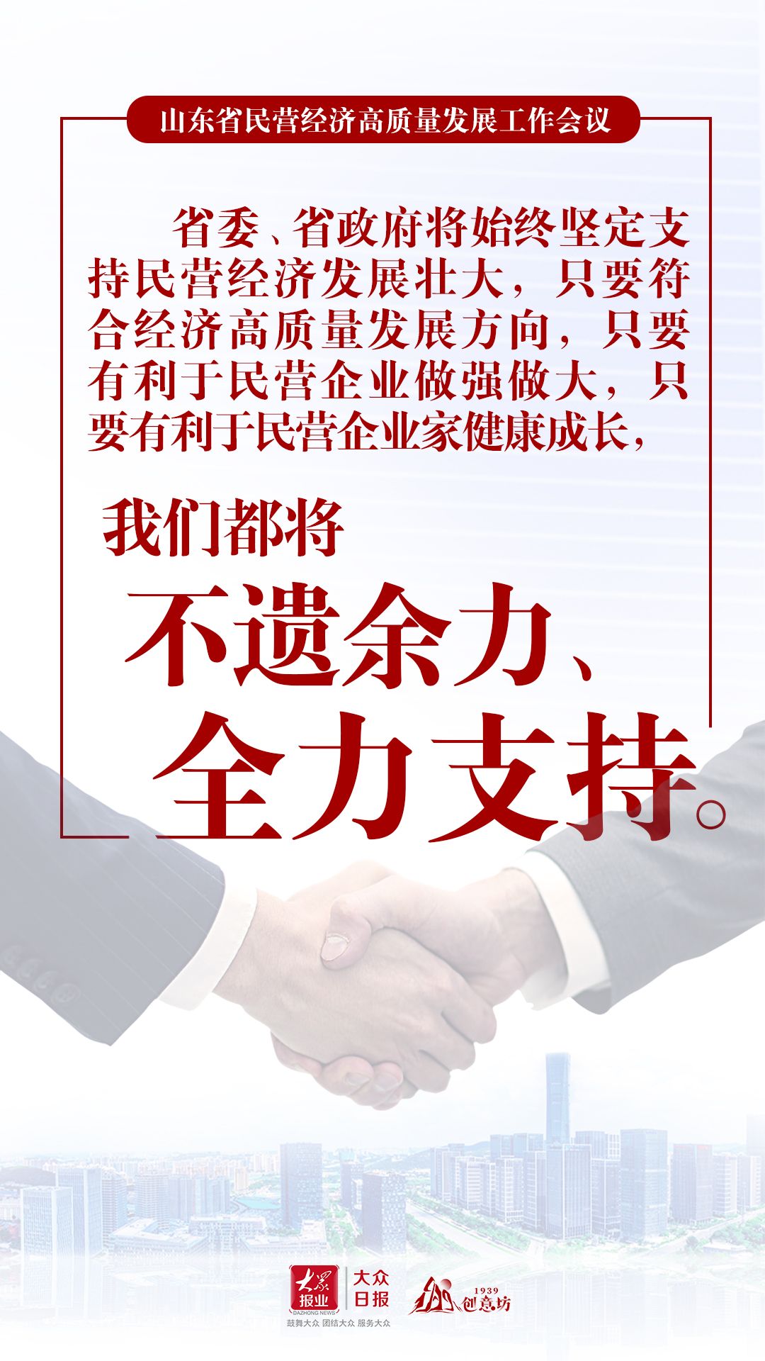 4月20日上午,山东省民营经济高质量发展工作会议在济南召开。会议深入学习贯彻党的二十大精神和习近平总书记关于民营经济发展的重要论述,紧密结合学习贯彻习近平新时代中国特色社会主义思想主题教育,认真落实党中央关于“两个毫不动摇”“三个没有变”方针政策,解放思想、坚定信心,抢抓机遇、乘势而上,加快推动山东民营经济高质量发展。
