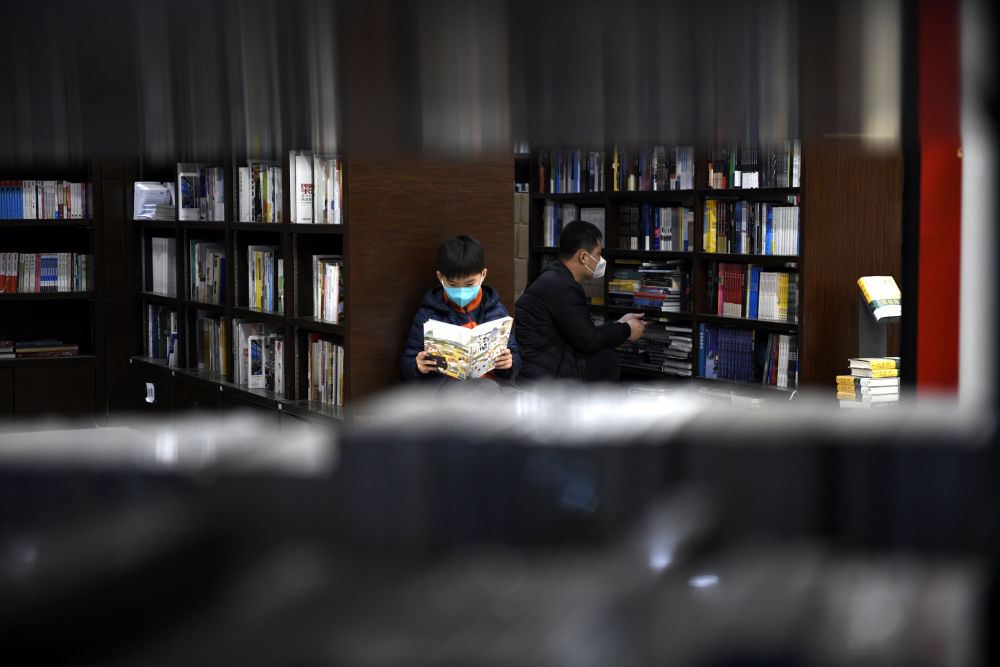 4月23日,在山东省临沂市平邑县新华书店市民在阅读 。新华社发(武纪全 摄)