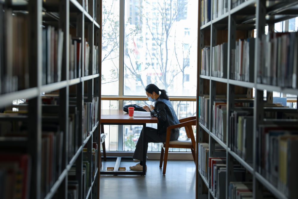 4月23日,学生在山东省青岛市图书馆读书学习。新华社发(杜春来 摄)