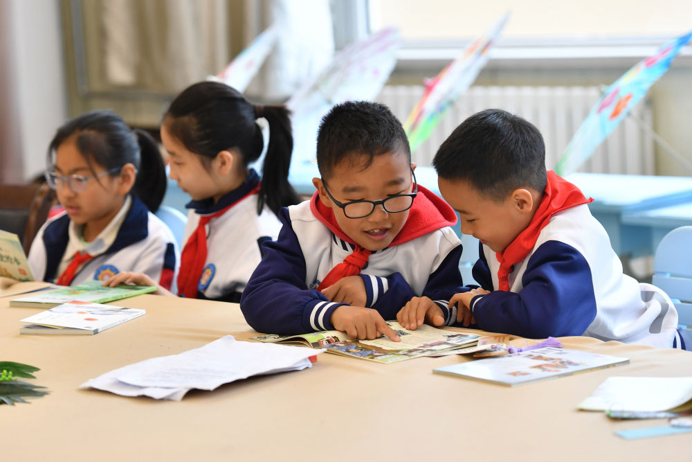 4月20日,山东省枣庄市山亭区新纪元小学的学生在阅览室读书。新华社发(李宗宪 摄)