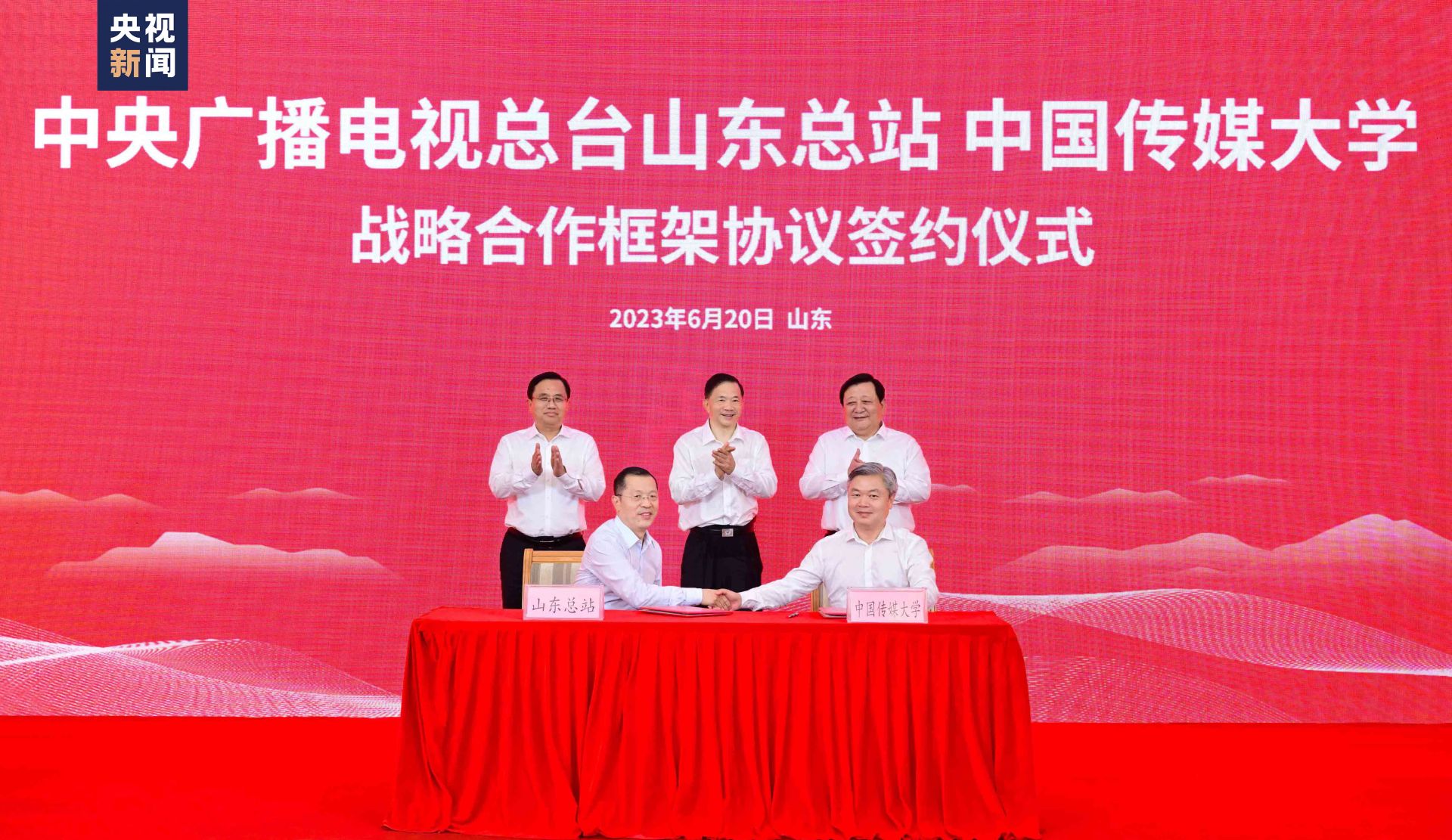 6月20日,中央广播电视总台山东总站与中国传媒大学、山东工艺美术学院分别签署战略合作协议。中央广播电视总台山东总站文化创意研发中心同时揭牌。
