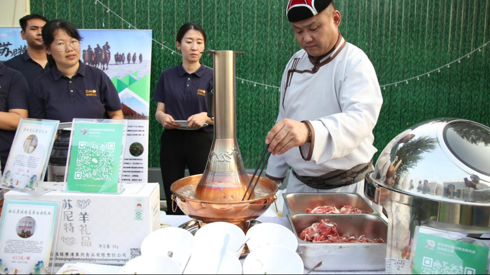 在推介会上,苏尼特右旗带来了苏尼特羊肉卷、后腿包、羊排、羊蝎子、驼奶等特色产品,邀请嘉宾现场品尝和感受来自草原羊的舌尖诱惑和苏尼特驼奶的健康饮食。