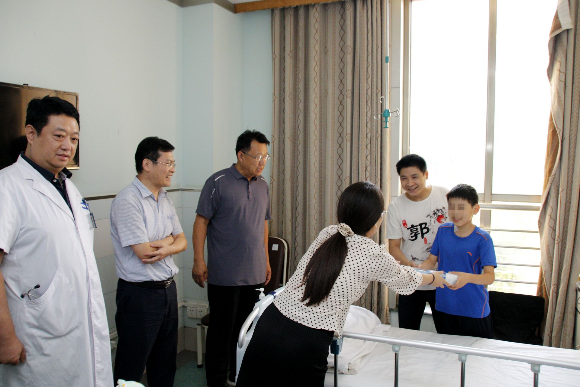 9月13日,山东省红十字会赈灾救护部部长王永君、德州市红十字会常务副会长李福辉、齐河县红十字会副会长张婧文一行来到济南市中心医院心外科看望正在住院治疗的15名先心病患者,并向患者家长表示慰问。