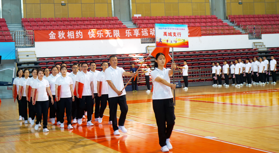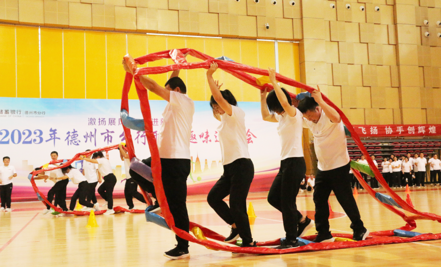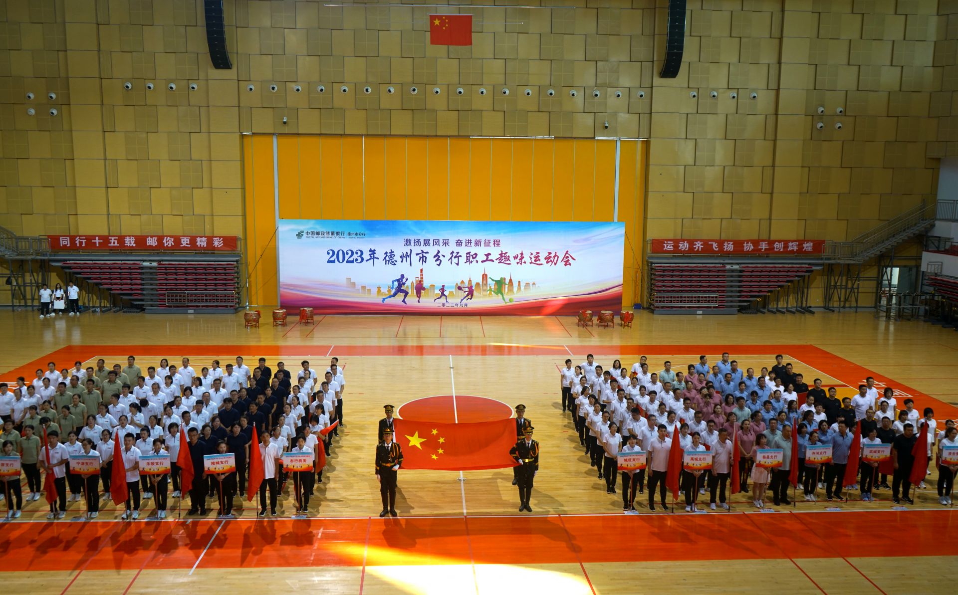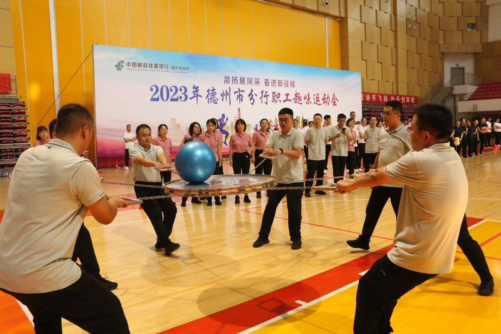 9月16日,邮储银行德州市分行职工趣味运动会在德州市体育馆举行。12支队伍,300名员工参加。