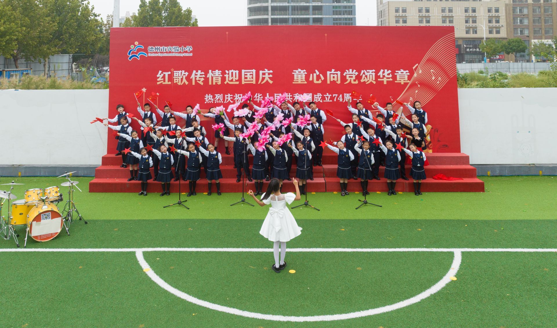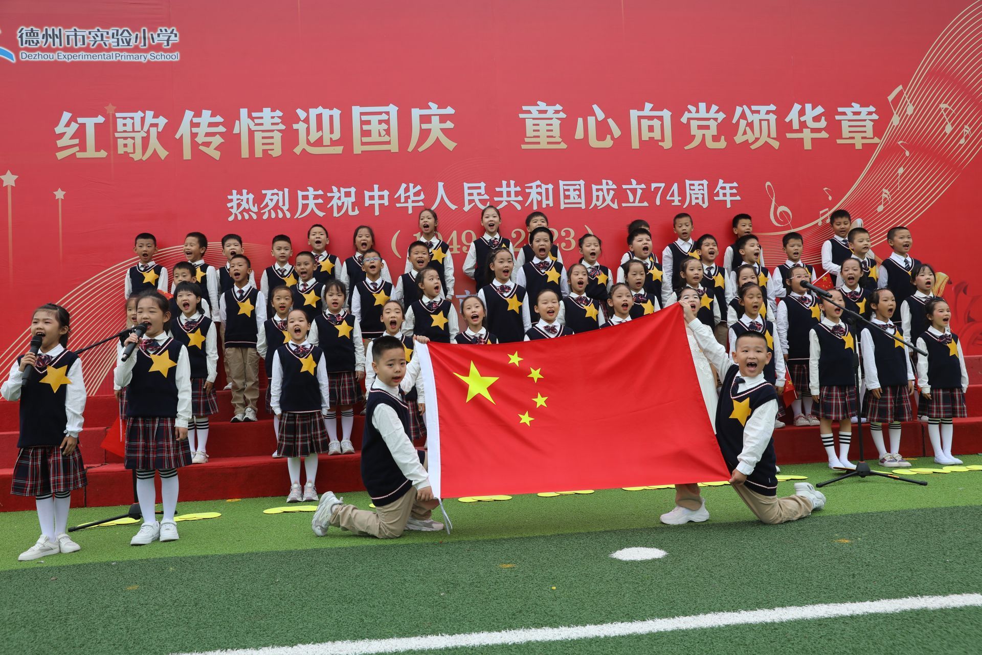 “五星红旗迎风飘扬,胜利歌声多么响亮……”9月27日,德州市实验小学校园内歌声嘹亮,这是该校举办的以“红歌传情迎国庆,童心向党颂华章”为主题的合唱比赛。