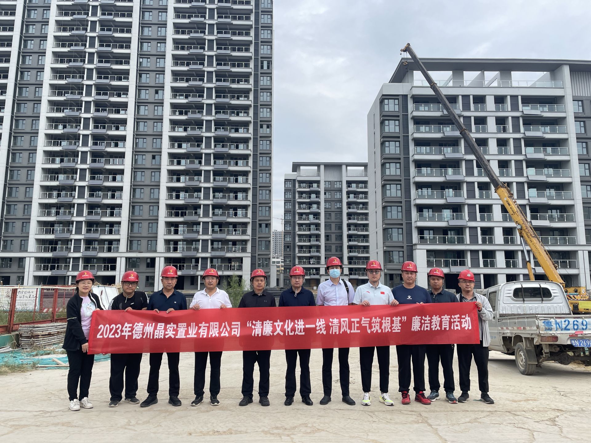 9月26日,在宁津水木清华项目施工现场,德州晶实置业有限公司组织全体党员干部、一线员工开展“清廉文化进一线”活动。活动中,全体党员干部员工认真观看了廉政视频,党支部书记刘滨以《加强廉洁文化建设 做公私分明的明白人》为主题为大家上了一堂生动党课,针对项目建设重要环节的廉政风险点,讲述了公私分明、先公后私、克己奉公的重要性,提醒全体党员干部、一线员工认真履职尽责、时刻把住关口,盯住岗位、守住底线。