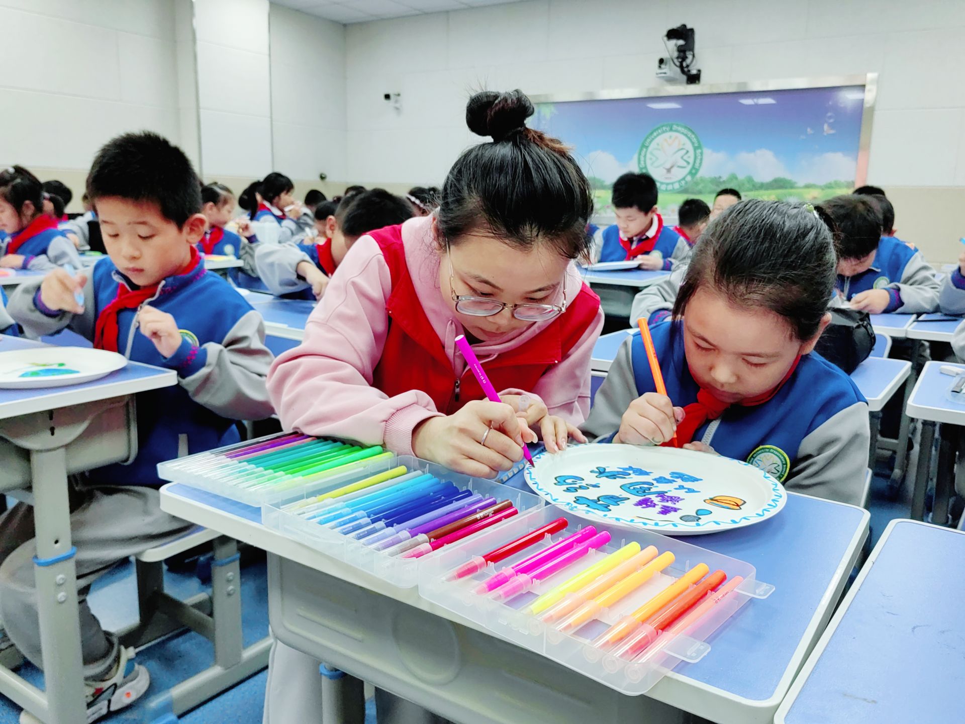 10月12日,德州学院附属小学三年级一班教室传出阵阵掌声,一场以“爱粮节粮 我有‘画’说”为主题的纸盘绘画活动正在举行。