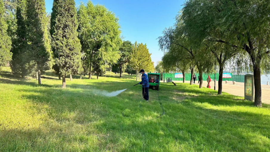 景区紧抓养护时机,提前安排部署,及时观察监测、采取“化学+物理”防治方法等措施,对黄杨、卫矛的褐斑病、炭疽病,草坪锈病等病虫害开展精准、有效防治,消灭和减少越冬虫源和病源,防止成虫产卵越冬,确保园林植物正常生长。