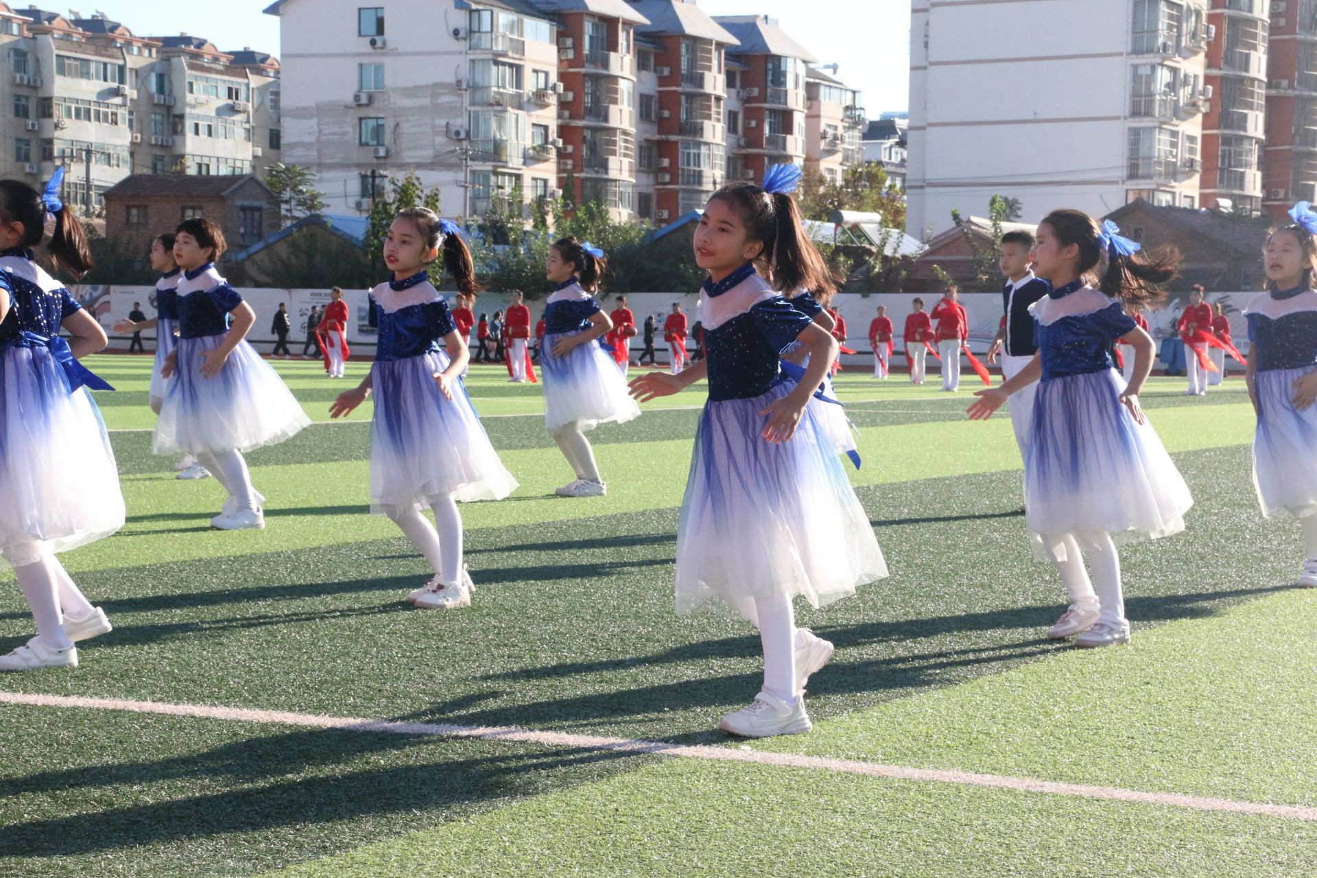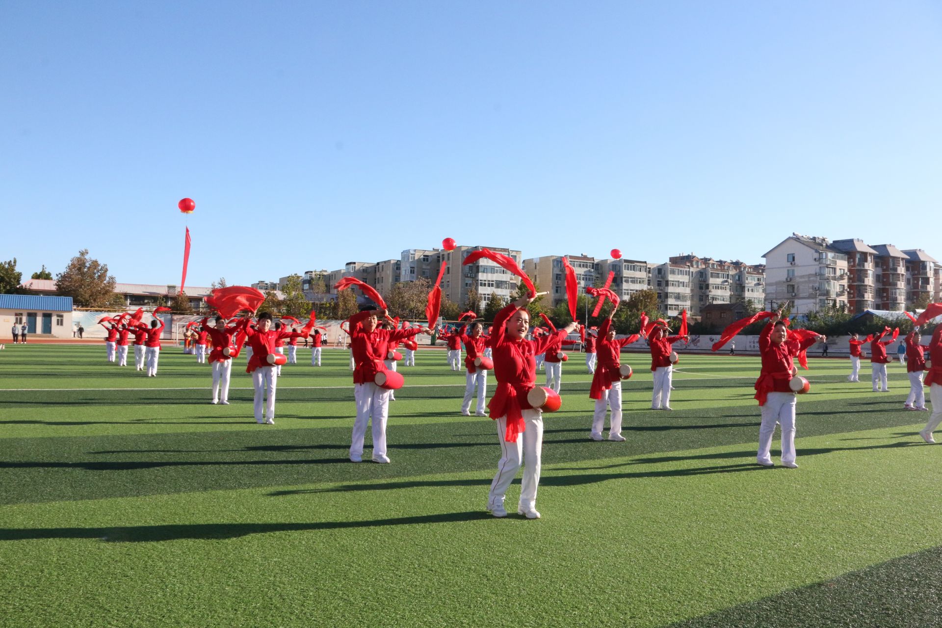 随后,湖滨北路小学、德城区健身活动站点、德城区红叶舞蹈队等单位为大家带来了精彩的文体节目展演。《我们都是追梦人》《鼓动天地》《幸福的日子舞起来》……精彩的节目让观众们目不暇接,将现场气氛推向高潮。