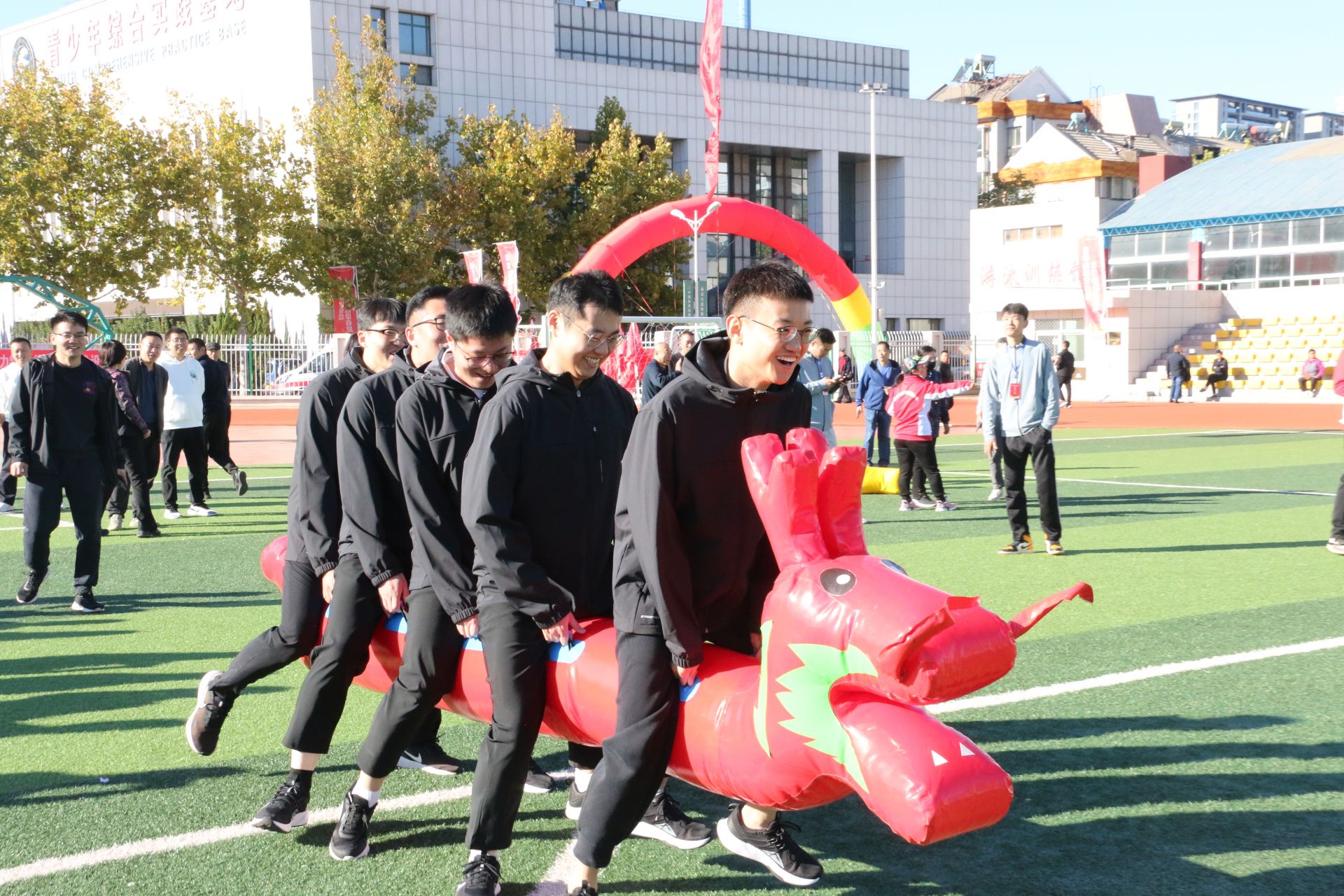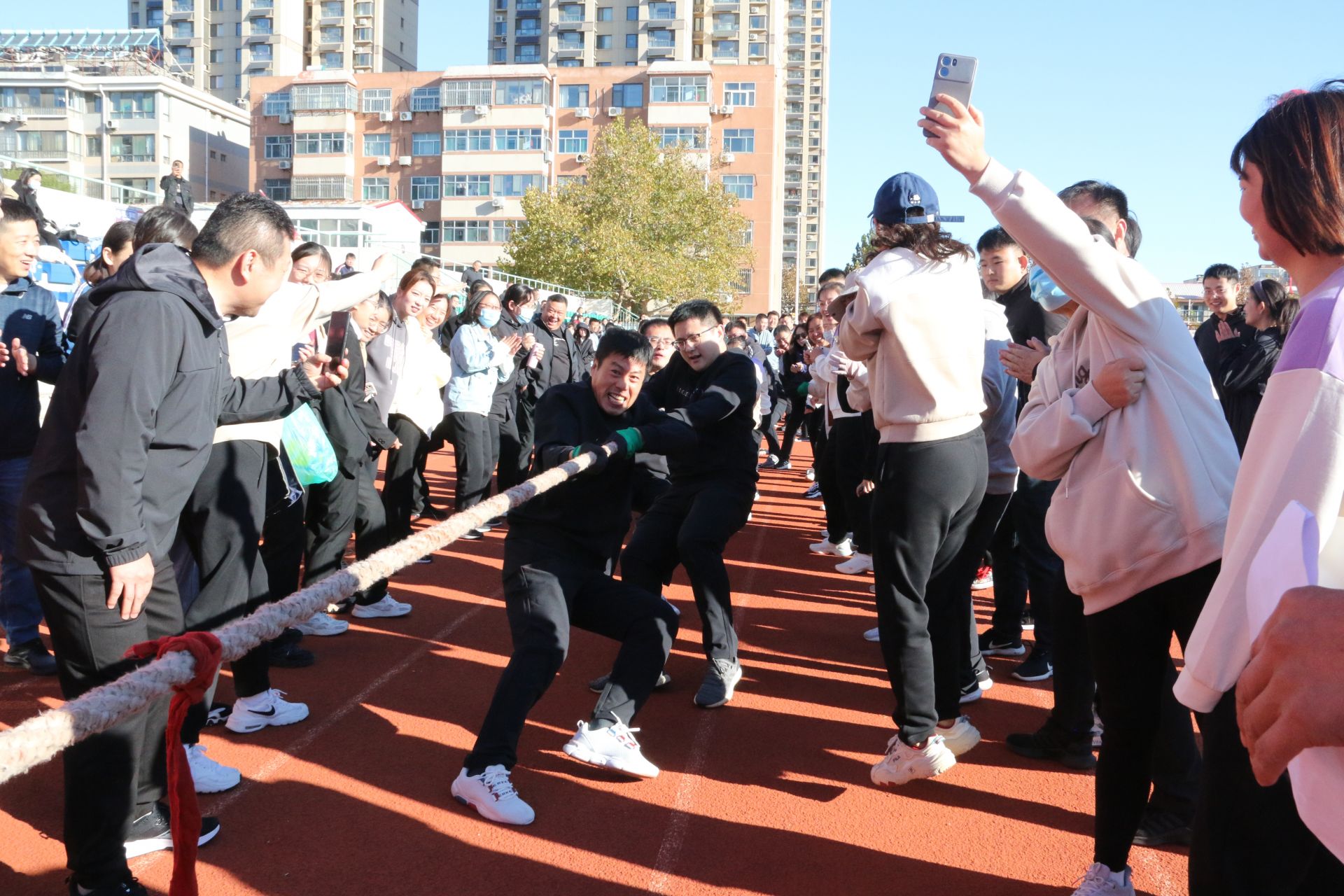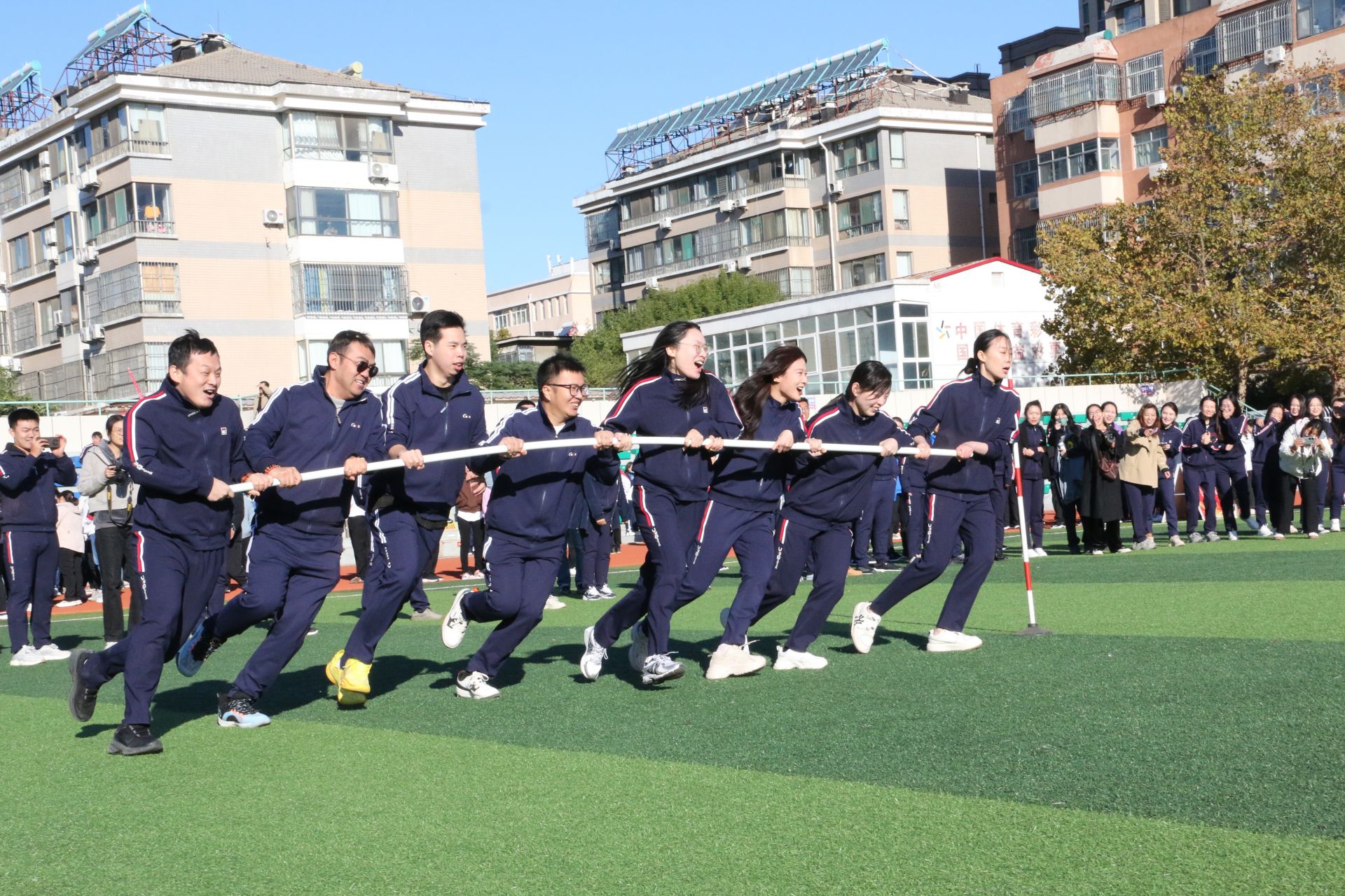 当天上午举行了拔河、旱地龙舟、旋风跑、跳大绳4项趣味健身赛,运动员们热情高涨、活力四射,齐心协力争取更好的成绩。观众们积极为参赛选手们加油助威,时不时传来阵阵欢笑声和欢呼声。