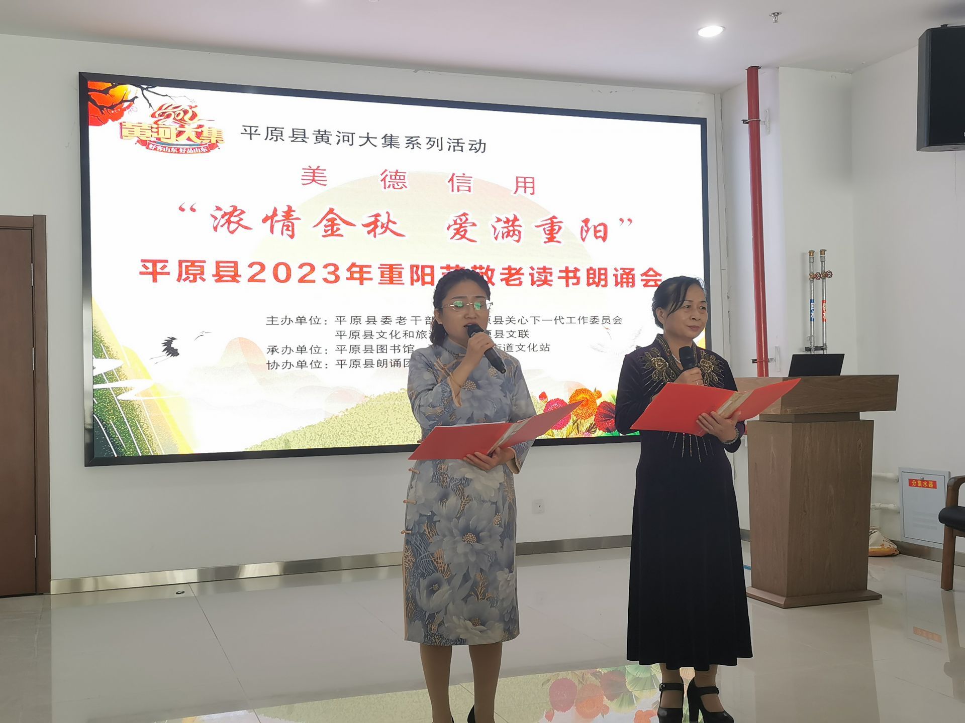 为大力弘扬中华民族尊老敬老的传统美德,倡导敬老、爱老、助老的新风尚。10月20日,黄河大集系列活动——“浓情金秋 爱满重阳”2023年重阳节敬老读书朗诵会,在县图书馆三楼报告厅拉开帷幕。