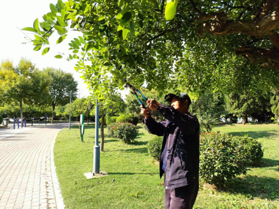 整形修剪,保持景观效果。根据园区植物生长情况,集中对低矮灌木的干枝、枯枝、伤残枝等进行修剪,均衡树势调节水分及养分供应,去除行道树的过密枝、下垂枝,消除安全隐患,打造空间合理、视线开阔的绿化景观效果。