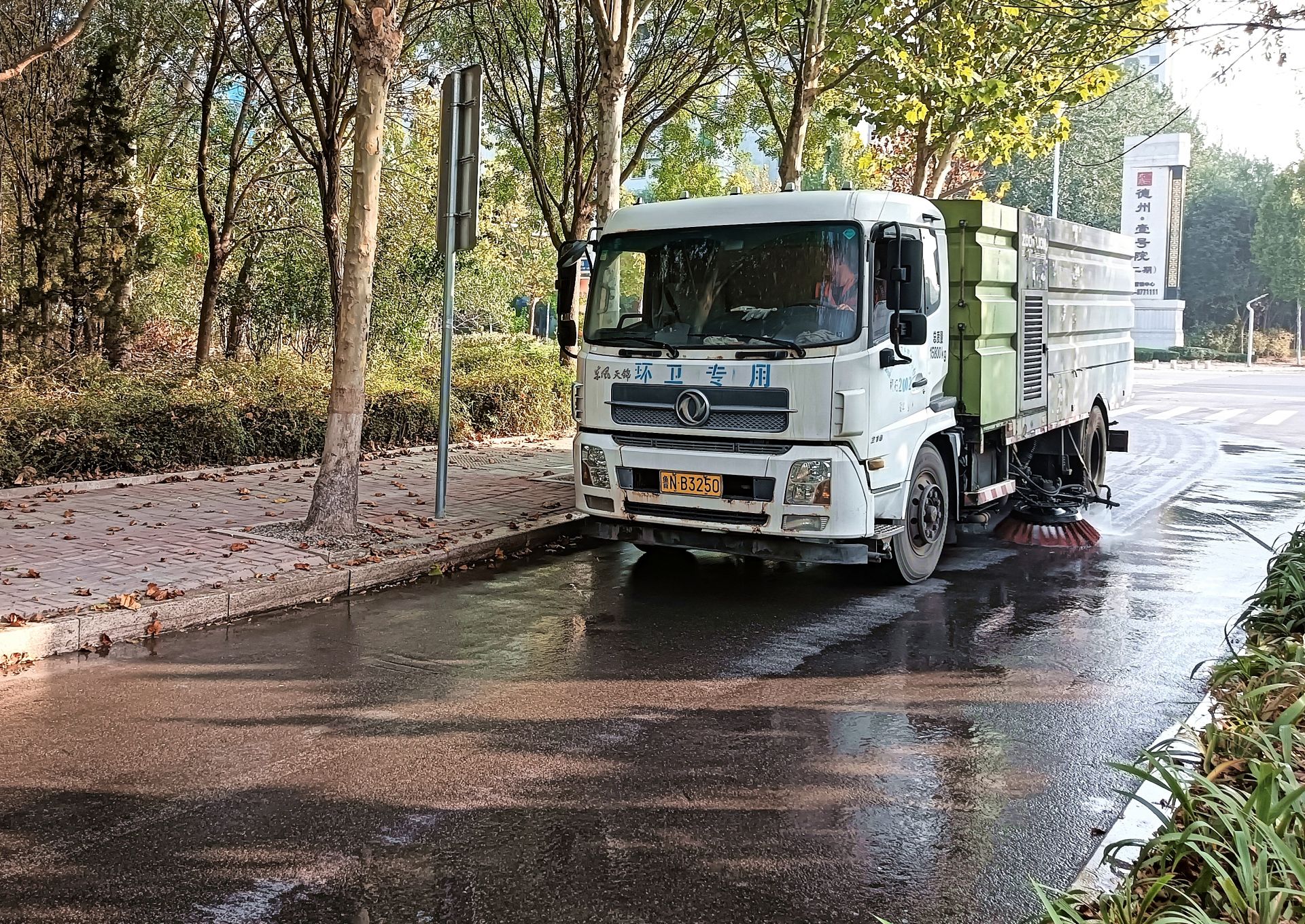 为破解这一难题,德州市环境卫生服务中心对辖区主干道停车位日常停放车辆情况进行摸排,主动对接交警部门,针对康博大道、广川大道、晶华大道、新河路等两侧停车位全天满位的主要道路采取定点清理措施,即每周安排两个半天,由交警部门提前告知机动车主暂时将车辆停放至其他位置,环卫中心出动高压冲洗车和机扫车各一部集中反复冲洗停车位路面,彻底消除浮土、积尘,直至恢复路面本色。