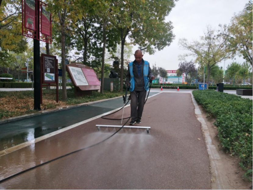 为全面提升长河公园路面洁净度,降低道路尘土污染,保证市民游园环境的干净整洁,德州市城市管理局长河公园管理办公室组织开展道路冲洗保洁专项行动,对园区内游览道路进行冲刷清理,还原道路“本色”,有效提升精细化管理水平和游园环境新颜值。
