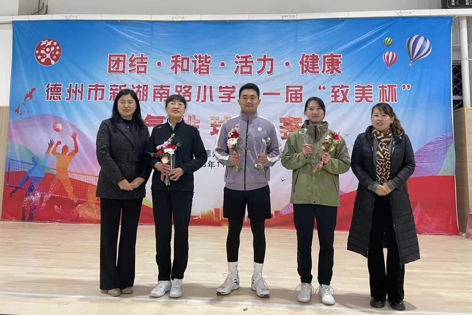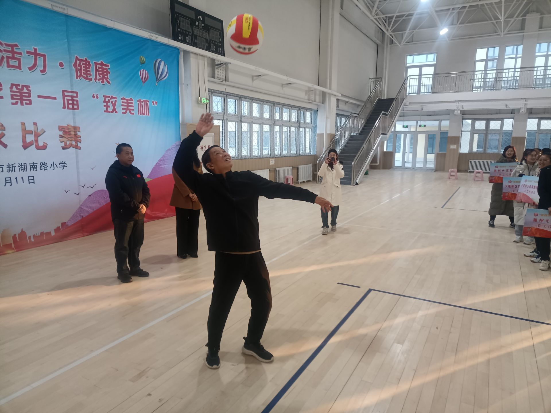 当天,天气虽然寒冷,但在德州市新湖南路小学新落成的体育馆内却是热闹非凡——该校首届“致美杯”气排球邀请赛成功举办。