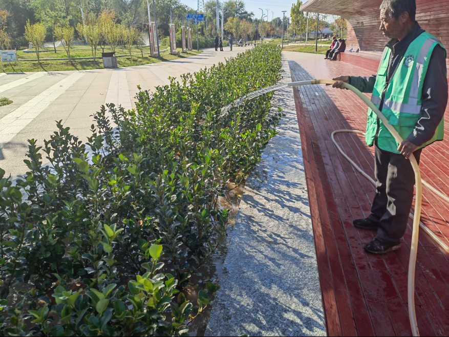 今年浇灌防冻水工作于11月中旬开始,根据植物不同的生长习性采用微喷、管道、水车等多种浇灌方式,确保浇足浇透。目前,园林工作人员正在有计划的对分车带、绿地、游园进行防冻水浇灌,计划于12月上旬全部浇灌完成。