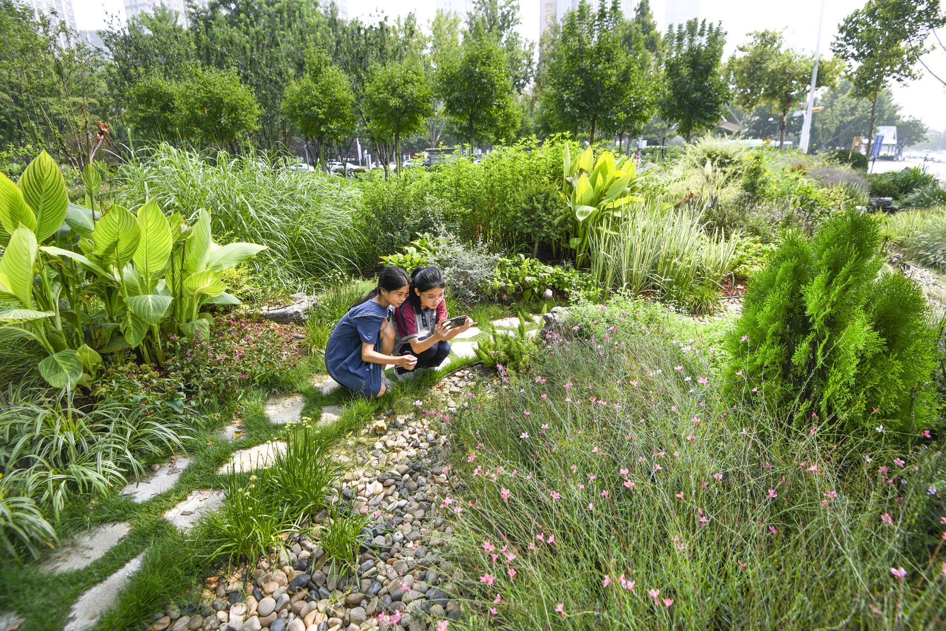 用生态的办法解决生态的问题。为做好园林绿化废弃物再利用工作,市园林绿化服务中心建立了全市首个碳循环创新示范基地,涵盖有害生物防治、新优苗木品种培育、扦插育苗、容器育苗、花境地被植物培育、园林绿化垃圾处理和资源化利用、盐碱土改良、有机基质调配共8项创新科研领域,成为我市园林绿化垃圾资源化利用进一步深化研究和示范应用的创新主阵地。先后完成了东风路和湖滨大道绿化改造施工、月季园和花境施工、绿地彩色景观和地景艺术营造等20余处示范应用,效果显著,资源化产品示范应用实现了从土壤改良到景观营造全应用,从绿化建设到绿地管养全覆盖。