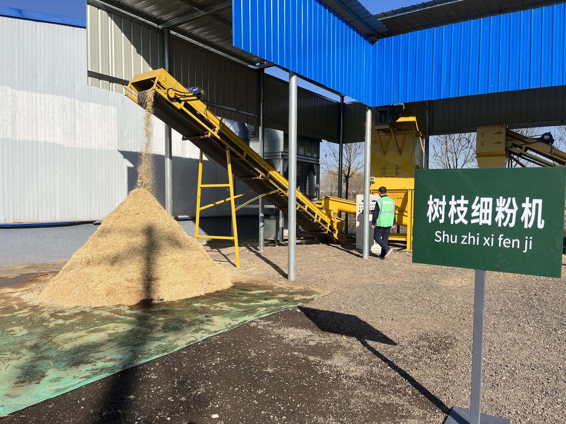 在德州市园林绿化垃圾综合处置中心,发酵场、生产车间、储存车间等分区有序,枝叶粉碎机、细粉机、粉碎分筛染色一体机等机器不停运转。