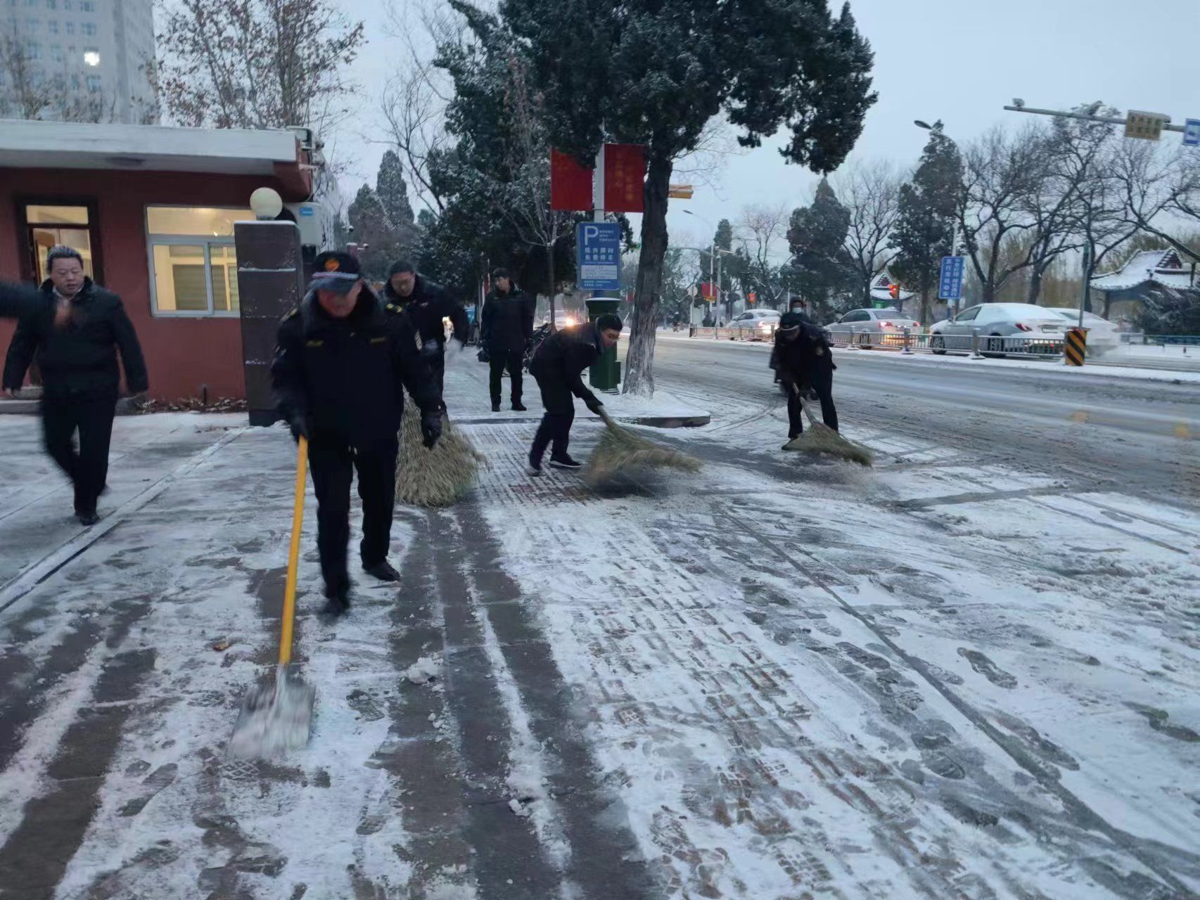 天衢街道机关、社区干部手持铁锹、簸箕等工具,对辖区内责任区、主次干道、背街小巷等区域开展清理。大家不畏严寒、相互配合、齐心协力,忙碌的身影成为皑皑白雪中一道靓丽的风景线,清理过程中,把“我为群众办实事”精神践行到底,为寒冷的冬日增添了一份温暖。该街道将持续关注降雪预报,随时掌握辖区路面状况,及时发现并消除安全隐患,多方位保障辖区道路畅通,为群众出行保驾护航。