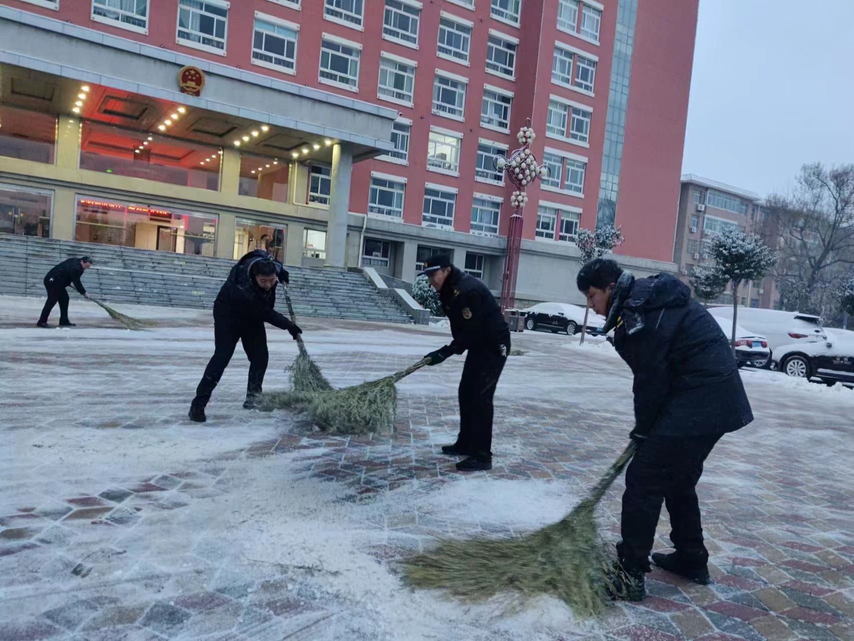德城区卫健局组织职能科室人员和各医疗机构开展清扫积雪行动。率先将辖区各医院院区区内的积雪清理干净,保证门诊入口无结冰,停车区域无积雪。同时,逐一清理院区周边路段的积雪,并由志愿者叮嘱来院就诊的患者注意安全,小心路滑,以实际行动为患者提供安全可靠、暖心放心的就医服务。