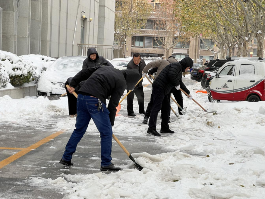 扫雪现场,大家提前到岗、分工有序,纷纷拿起铁锹、扫帚、铲斗等清扫工具,配合默契,干劲十足。经过两个多小时的团结协作,路面上的积雪基本清理干净,最大限度得减轻了降雪对出行造成的不利影响。