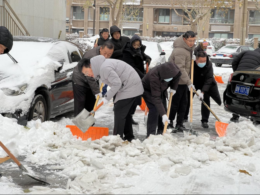 为有效应对雨雪天气,确保群众出行安全,12月15日,庆云县人大常委会机关组织党员干部在责任区内开展积雪清扫工作。