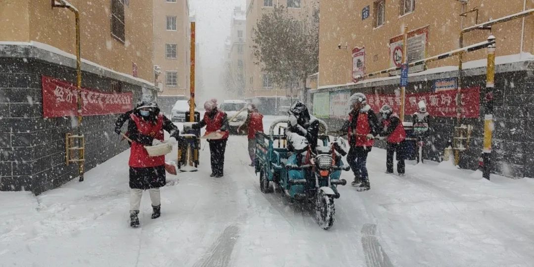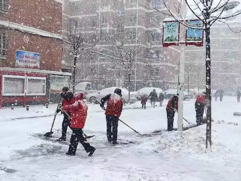 街道及社区工作人员带着铲子、铁锹、扫帚走上街头,对辖区内道路积雪进行清扫,大家迎着风雪抢抓扫雪除冰黄金时段,防止气温骤降后道路结冰。同时,督促辖区企业、小区物业及时清除院内积雪,督促沿街店铺严格落实“门前五包”责任制,做好门前积雪清扫工作。寒风中,大家不畏严寒,开辟出一条方便群众通行的暖心路,让群众真真切切地感受到寒冷冬天里的一抹温暖。