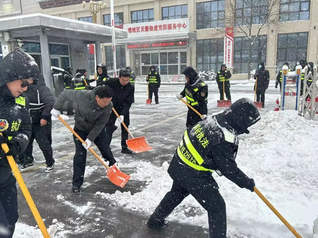12月14日,受寒潮影响,德城区普降大雪,翩然而至的大雪严重影响市民的出行安全。为切实做好扫雪除冰工作,确保城区道路畅通和市民出行安全,德城区天衢街道第一时间启动扫雪除冰预案,组织全体工作人员、村居、企业开展积雪清理,为保障道路顺畅、群众出行安全尽一份力。