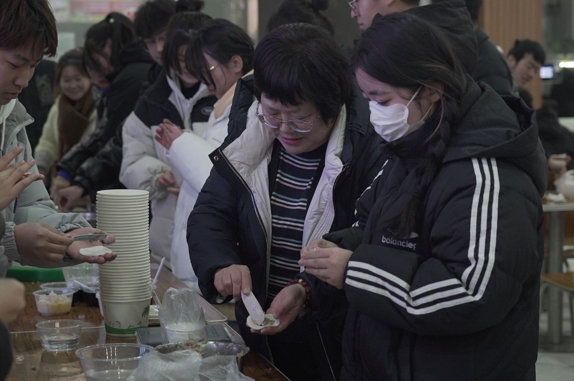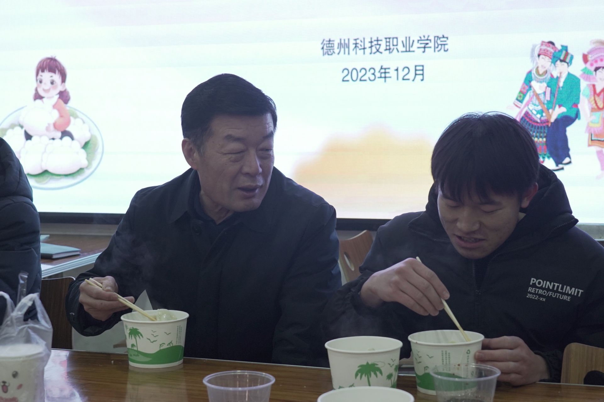 座谈会结束后,师生一同前往学生第一餐厅包水饺迎冬至。在包水饺的过程中,学院领导与师生相互配合、团结协作,并进一步询问了解师生的工作、学习情况,普及中华优秀传统文化知识,引导广大师生主动了解文化、掌握文化、传承文化,自觉树立理想、明确目标、砥砺奋进。伴随着香味扑鼻的热水饺,师生们围坐一起、共同品尝,在欢快轻松的氛围中喜迎冬至的到来。