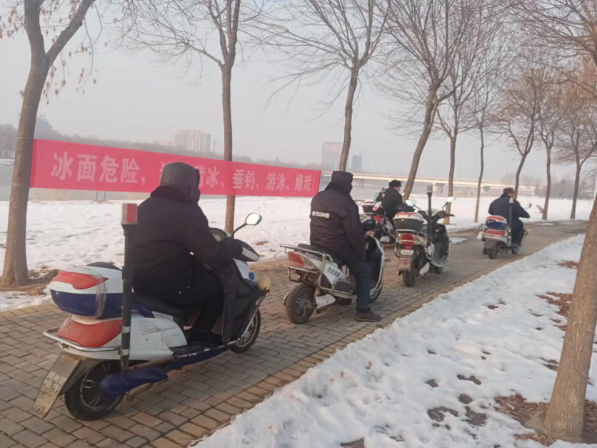 进入冬季以来,寒潮低温、大雾天气多发,为进一步加强辖区水域安全,连日来,市城管局锦绣川景区管理办公室持续开展巡逻警示工作,在河岸边危险路段增加安全警示条幅,每天组织巡逻车和人员进行巡视,利用船只沿河岸破冰,对在冰面上行走的市民进行耐心劝阻,防止坠冰和溺水事件发生,切实保障辖区水域安全形势持续稳定。同时,景区呼吁广大市民增强安全意识,远离危险、谨防溺水!