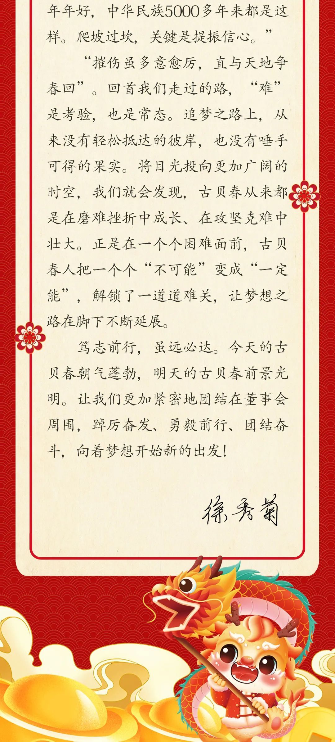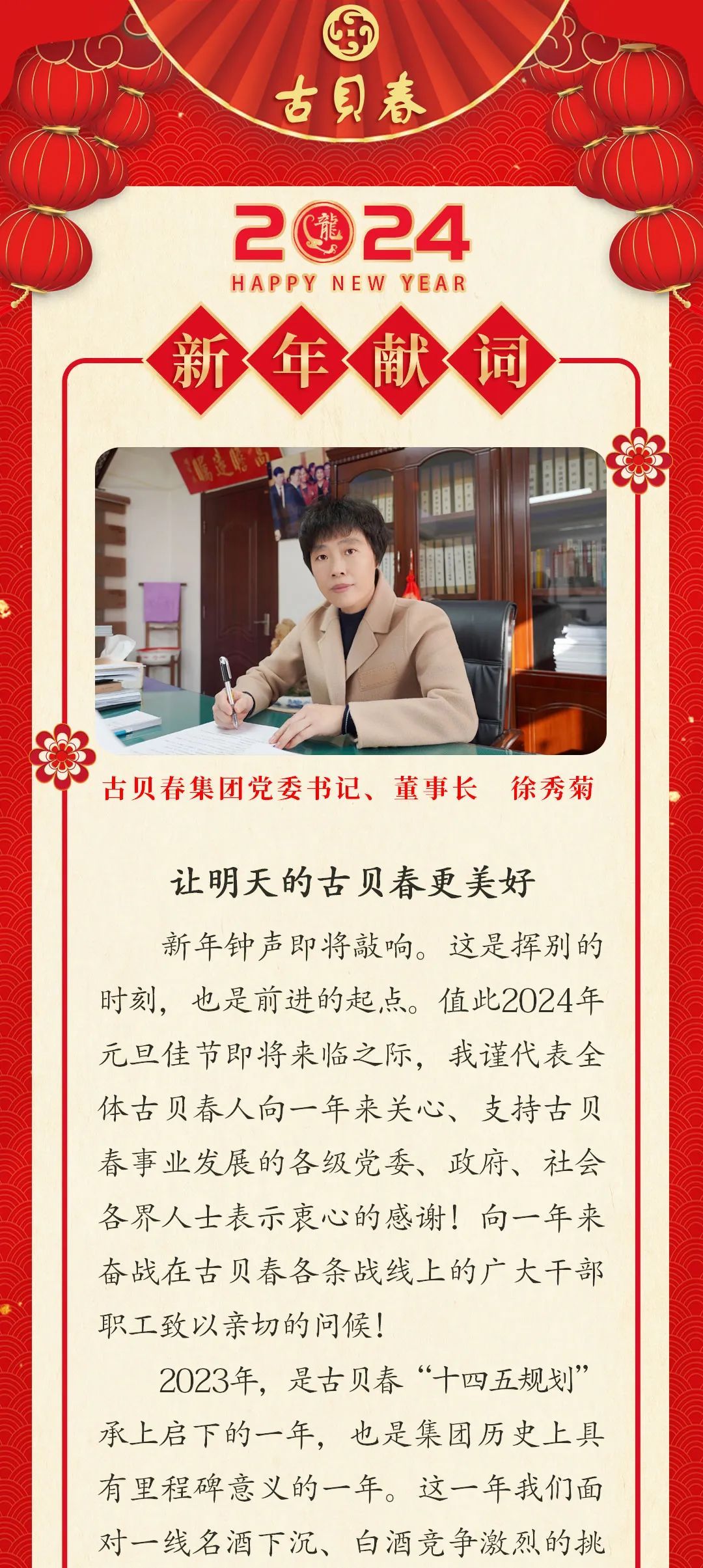 让明天的古贝春更美好 | 古贝春集团有限公司董事长徐秀菊2024年新年献词!