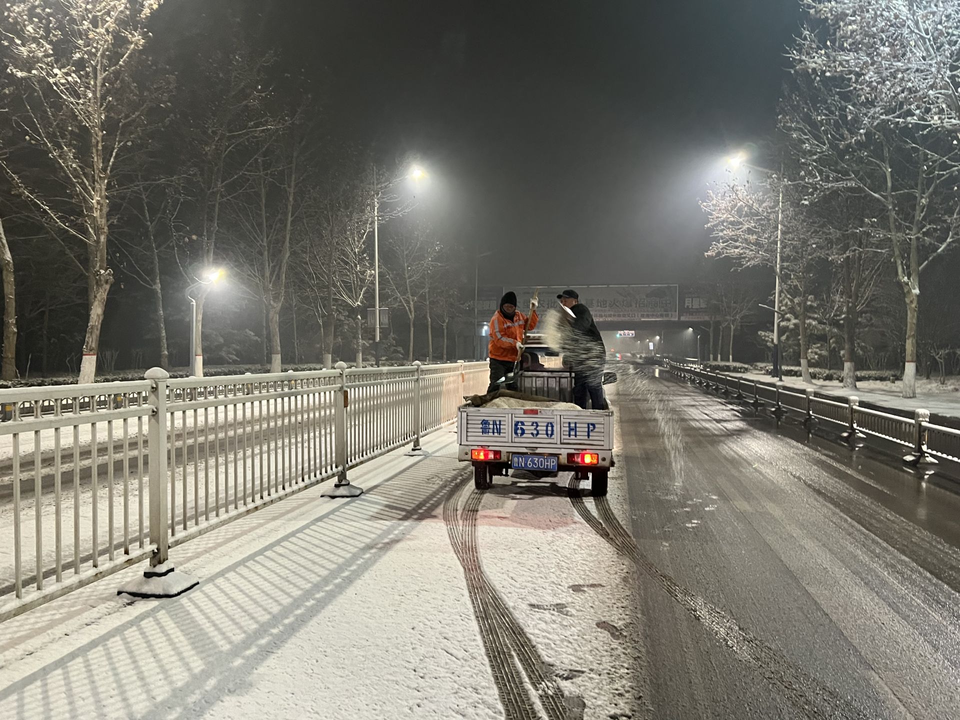 1月17日凌晨4点左右,随着路面出现积雪,市城管局出动人员2200余人,各类型除雪车辆160余台,按照“先融雪后推雪、先重点后全面、全力保障通行”的原则,首先对桥梁、匝道、破路等重点部位撒布融雪剂,再按区域及时采用人工清雪和机械化清雪相结合的方式,优先对重点路段、重点交通枢纽,尤其是机关、医院、学校、居民居住区、大型商场(超市)、高铁周边进行扫雪。截至目前,责任区内主要道路机动车道、非机动车道基本保持畅通,人行道也均具备了通行条件。