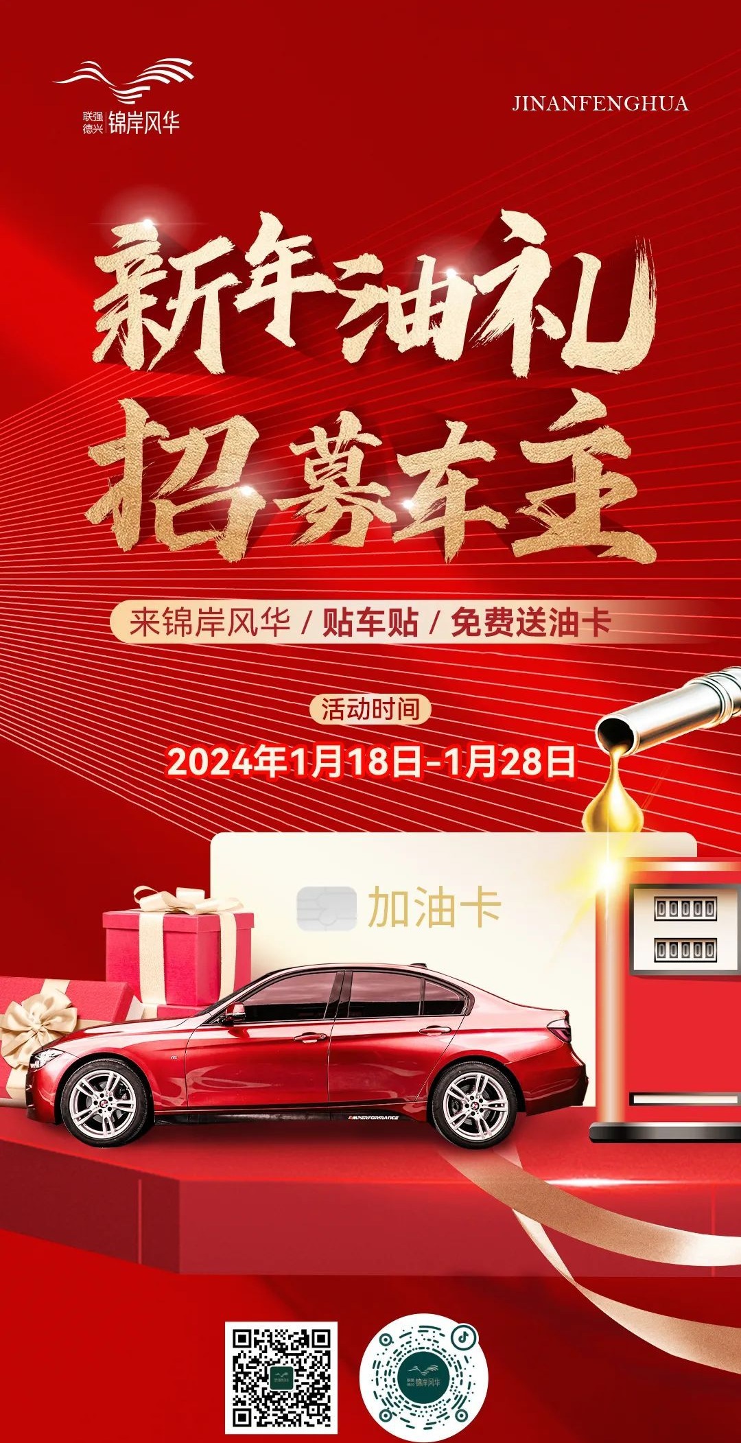 3.车贴需贴满30天,后凭完好车贴至锦岸风华领取价值100元的加油卡。
