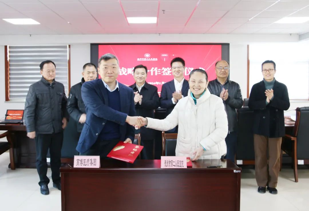 1月22日,德州市第二人民医院与高博医疗集团签署战略合作协议。德州市卫生健康委党组书记、主任常树风,德州市第二人民医院党委书记高立民,高博医疗集团副总裁、北京高博医院执行副院长尚华,高博医疗集团首席信息顾问陈金雄出席签约仪式。医院党委副书记、院长杨志红主持签约仪式。