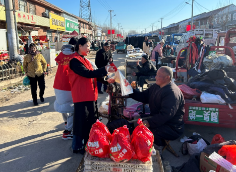 1月15日,临邑孟寺镇工作人员走进孟寺村黄河大集,开展反邪教普法宣传活动。