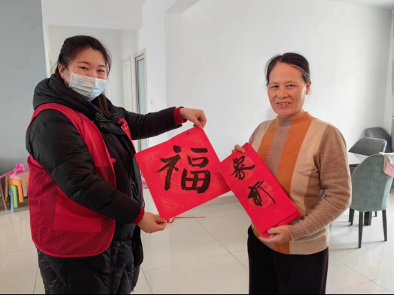 一张张喜气吉祥的红纸铺散开来,志愿者们和书法爱好者饱含创作热情,铺纸、泼墨、挥笔、书写,一气呵成,一幅幅充满喜庆、吉祥、祝福的对联随笔尖流动而出,一个个“福”字在书法家的挥毫下运笔而生。随后网格员和青年志愿者们将写好的满含吉祥祝福寓意的春联、“福”字等赠送给居民,提前为居民送上新春祝福。