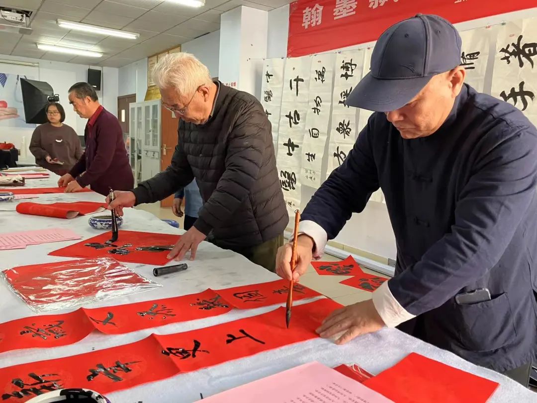 “鹤舞鸾飞平安岁,龙腾虎跃吉祥年”“春回大地山川绿,龙吟风起气象新”“刚唱兔岁歌一曲,又饮龙年酒三杯”……现场,各位书法老师们提笔蘸墨,行笔自如。一个个“福”字灵动有力,每一幅都透出浓浓的喜气。