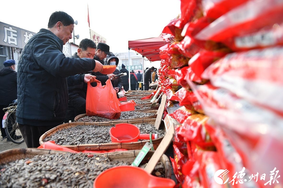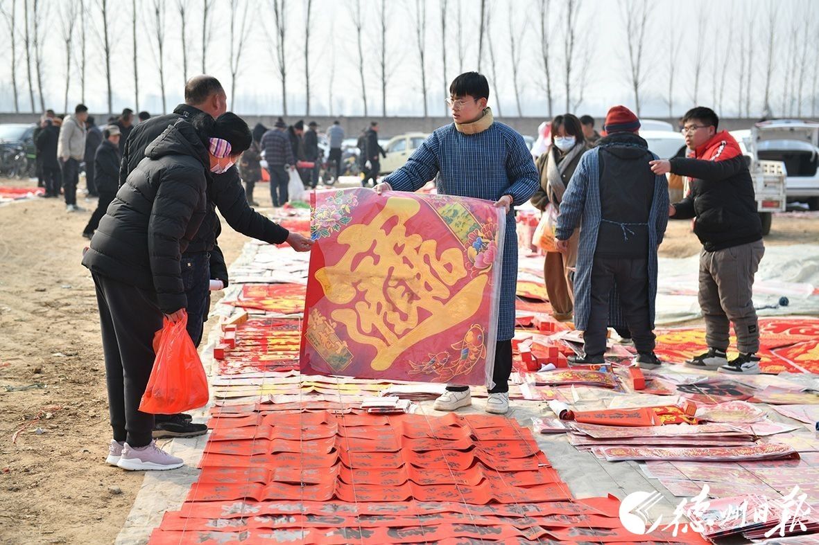 俗话说,进了腊月门,年味铺满集。2月6日,腊月二十七,正值夏津县香赵庄大集,天气虽然寒冷,集市上却是人声鼎沸、热闹非凡。集市上各种年货应有尽有,让人眼花缭乱,最受欢迎的当属福字春联、鲜艳喜庆的挂饰摆件和火红的窗花。