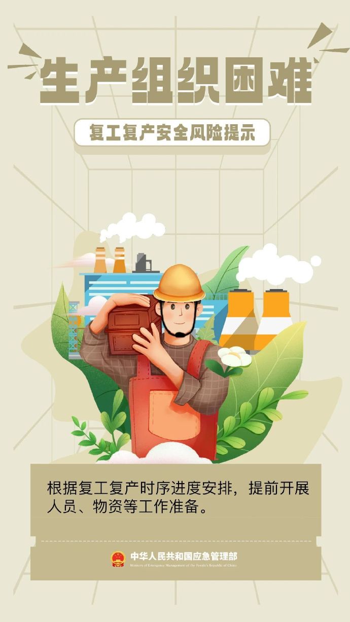 春节假期结束,不少工厂企业开始复工复产。受假期影响,人虽然回到工作岗位了,但思想不集中,这就是“假期综合征”。其危险之处就在于职工身心疲惫、心情烦躁、精力不集中,很容易违章操作,如不及时加以警示和引导,极易引发安全事故。年后复工复产要警惕哪些安全风险?这份安全提示请转发收藏↓↓