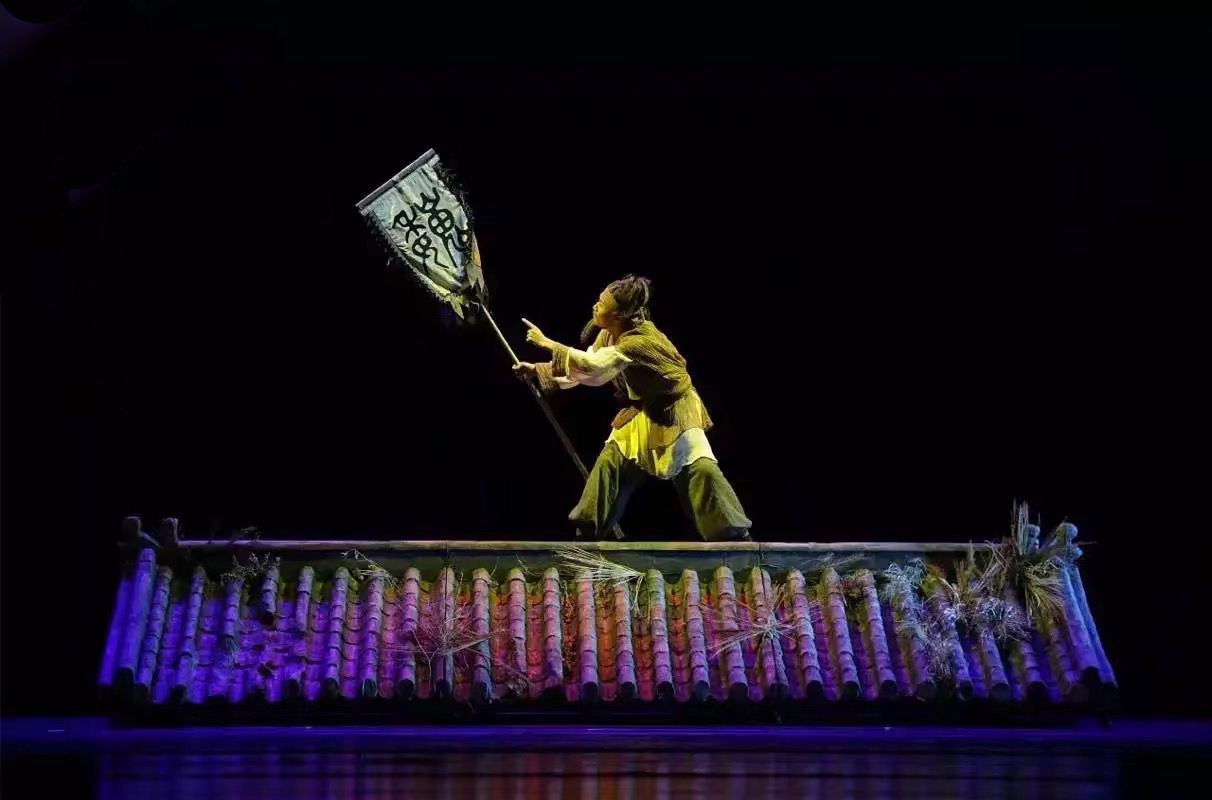 有一个动作叫“踢月腿”,为了表现老人内心的挣扎、反抗与无奈,需要在屋顶最边缘展示。起初,指导老师希望我做武术中的“兔翻”,因为空间有限,少了借步、助跑,高难度动作需要瞬间爆发,落点必须又稳又准。从垫子、地上反复练习了两个多月,才敢到台上练。有一次,腾空后没有抱紧双腿,双臂不自觉展开,摔下了台,好在反应快,没有受伤。这次失误启发了我的灵感,和老师商量后,将空中抱腿改为展臂旋转,“兔翻”变成“踢月腿”,技术难度不减,落点更稳,也更富美感。