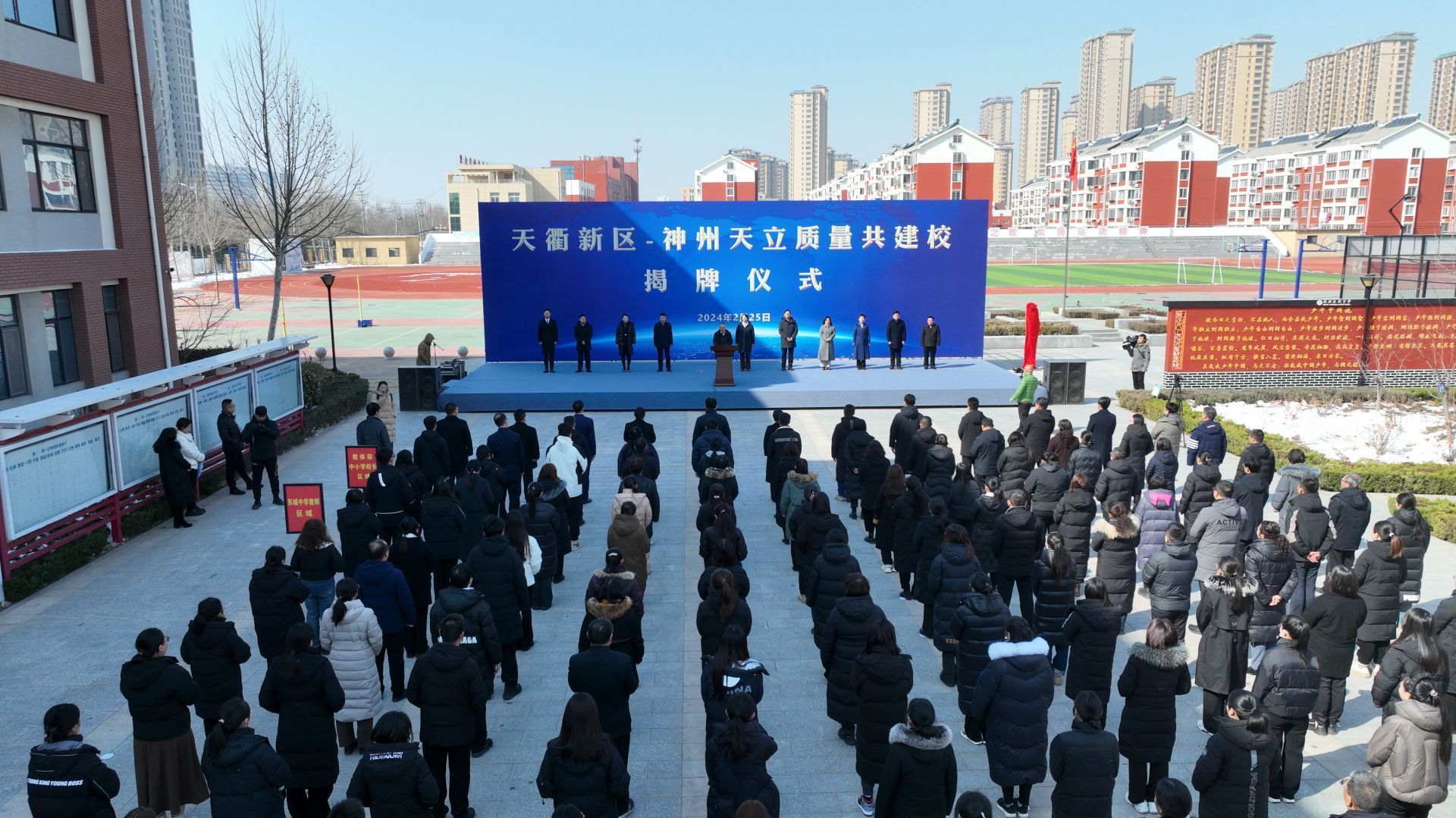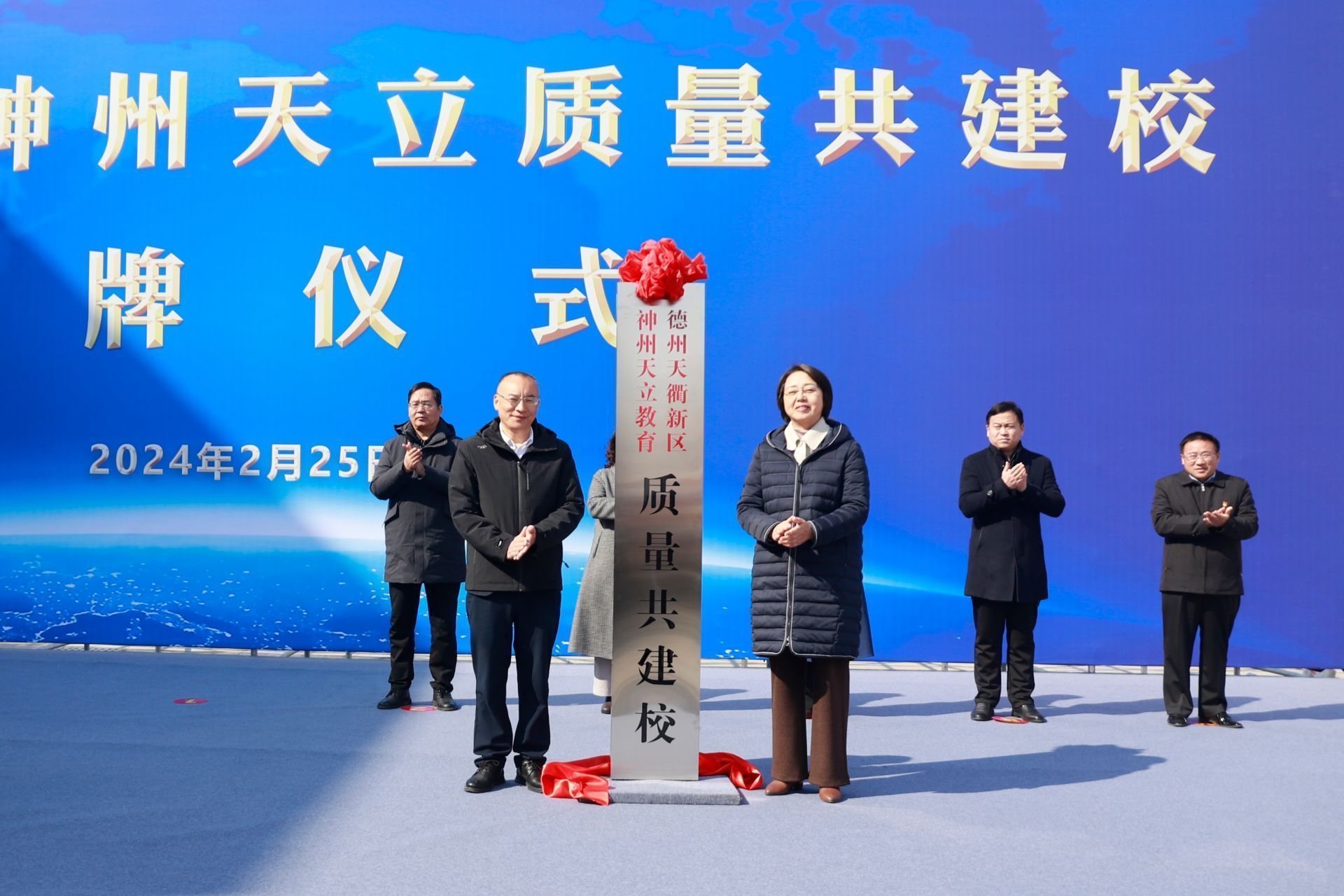 2月25日上午,德州天衢新区与神州天立教育集团合作办学揭牌仪式在东城中学举行。德州市政协副主席、市教体局党组书记、局长隋力,天衢新区党工委副书记、管委会主任王大山,天衢新区党工委委员、管委会副主任申毅,神州天立教育集团投资发展中心总裁黄正军及德州市教体局、财政金融部、教体卫生事业发展部、袁桥镇党委负责同志,教体系统全体机关干部,东城中学、同济中学、崇德中学、一中附中、抬头寺中学及袁桥镇各小学校长160余人参加揭牌仪式。