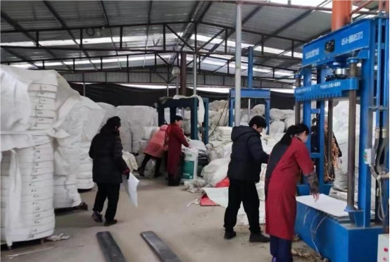 走进郑家寨镇吴辛村的吨包加工“共富工坊”,几名农村妇女正在生产线上忙得热火朝天,一条条吨包袋经过工人们的精细加工,很快就被生产出来。