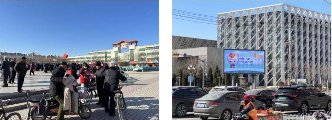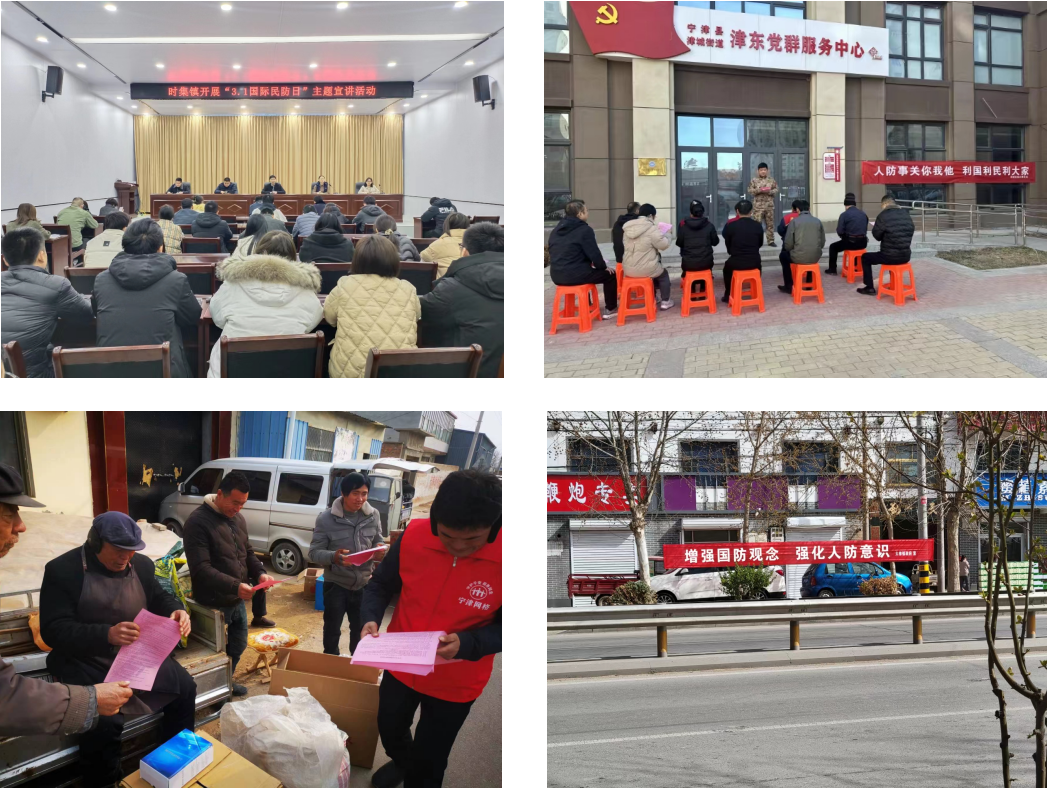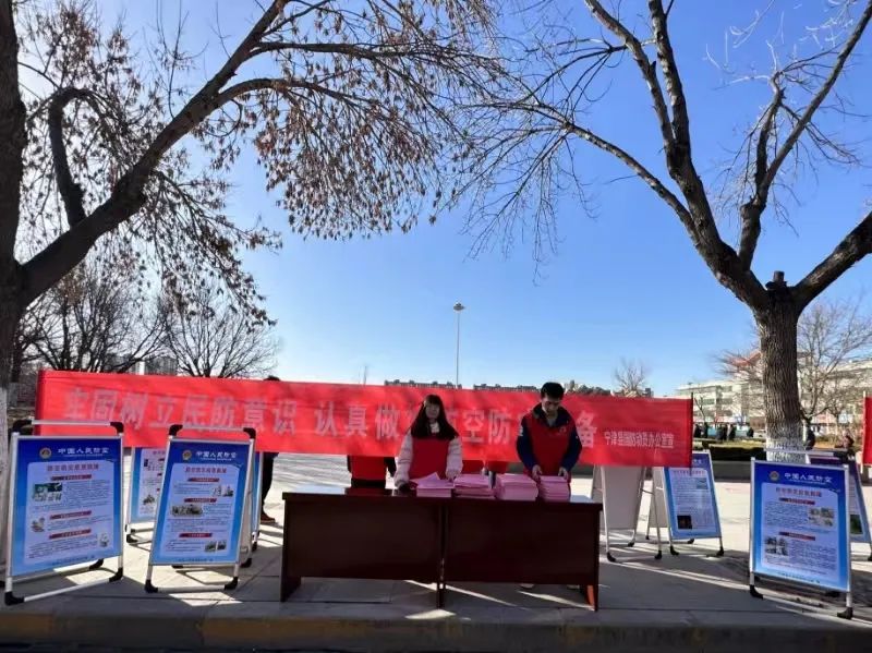 一是在城区,采用“线上+线下”相结合的方式,活动现场通过悬挂条幅、设立宣传展板和咨询台、现场发放讲解人防宣传资料,利用540部电梯、4个户外大屏、FM95.2全时段循环播放,在宁津电视台综艺频道、综合频道黄金时段播放国防教育宣传片进行宣传。